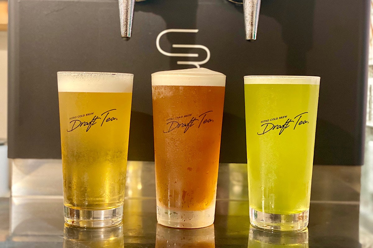 日本初のビールサーバーから窒素をたっぷりと含ませながら注ぐ、見た目はまるでビールのようなクリーミーな泡の乗った水出し緑茶です。