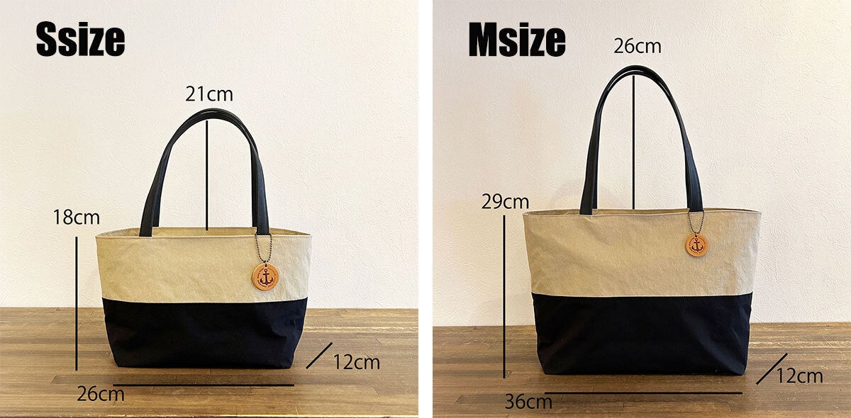 Sサイズ 縦18cm 横26cm まち12㎝ 持ち手21㎝(高さ)
