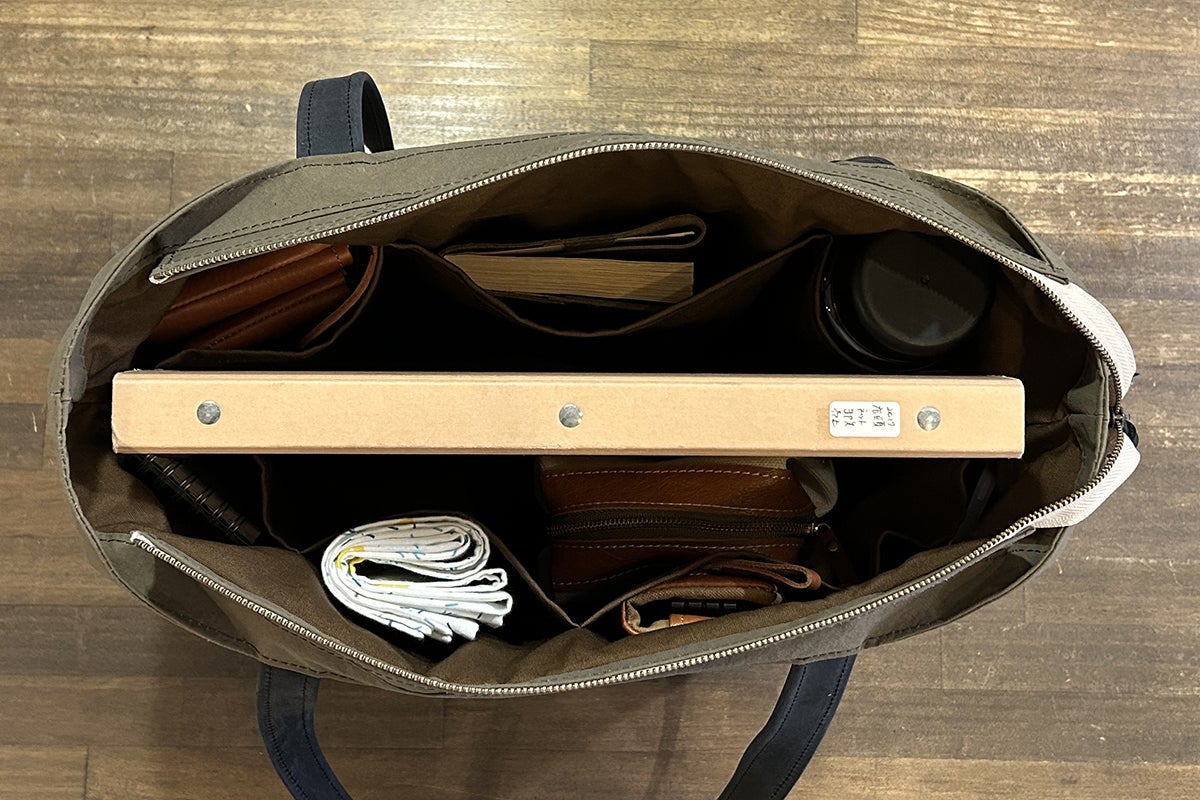 底にウレタンの芯材を縫い付けているので、バッグの中身を優しく、保護してくれます。