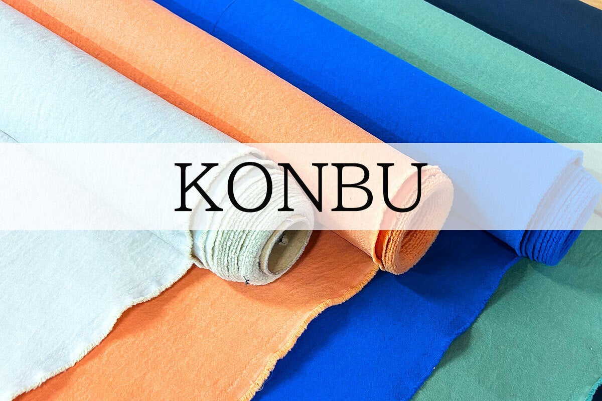 天然素材の成分で染めたナチュラルな風合いながら、撥水加工により汚れにくく、形状記憶により自立する、そして軽量で丈夫な素材。それがKONBUです。