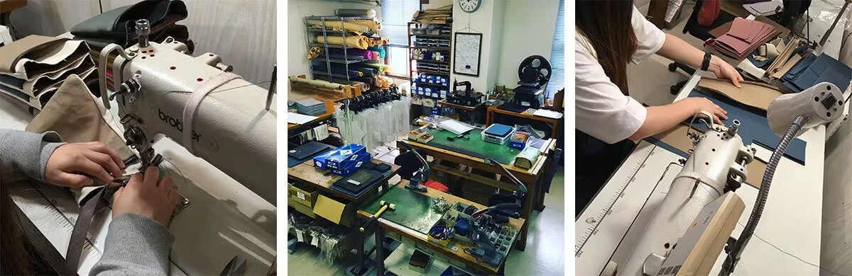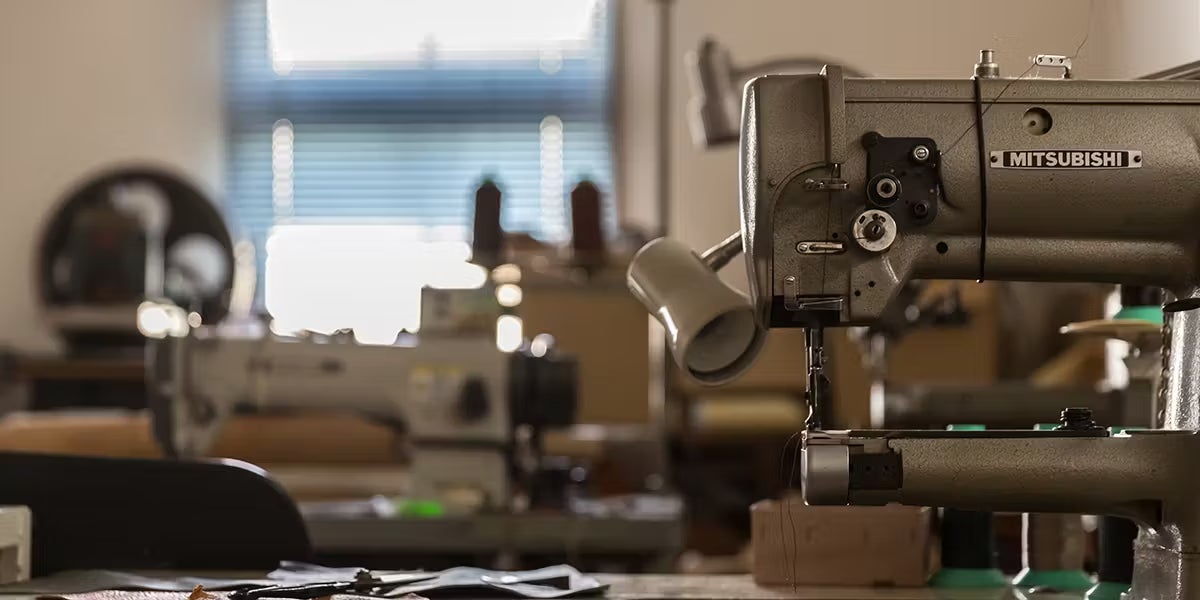 ビルの中にある工房の他に、店内にも工房が併設されており、お店の中にはいつも大きな工業用ミシンの音が鳴り響いています。