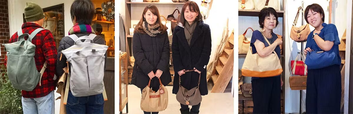 ▲ご夫婦や親子でcluetoのバッグを使ってくださっています。貸し借りもできるので2倍楽しめますね。