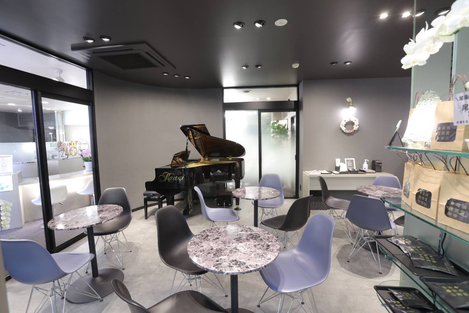 同時に、維持していくためにも利益の生産性が必要であることから、 毎日でも利用可能な低単価な事業を、カフェ(LIVE CAFE)という形で COSMETIC に併設し、三事業複合型店舗にするべく店舗改装を致しました。