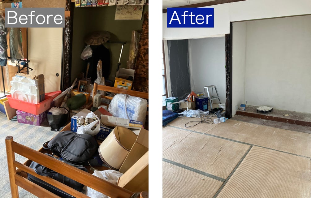 その他: 残置物を全て撤去し、水漏れのあった水道も修復しました。タンスが11個あり、全て解体して、廃棄しました。