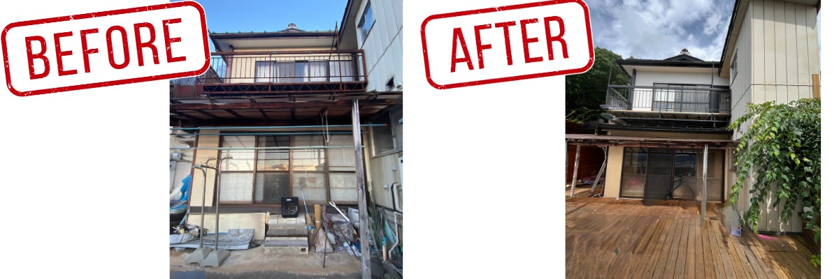 古い庭は、雑草が生い茂り、荒廃していました。そこで約16坪のウッドデッキを設置しました。ウッドデッキからは、周辺の景色や諏訪湖の花火大会を楽しむことができます。広々としたウッドデッキで、バーベキューやヨガなど、様々なアクティビティを楽しむことができます。日当たり抜群なので、読書や昼寝にも最適です。まるでリゾート地にいるような、優雅な時間を過ごせるでしょう。