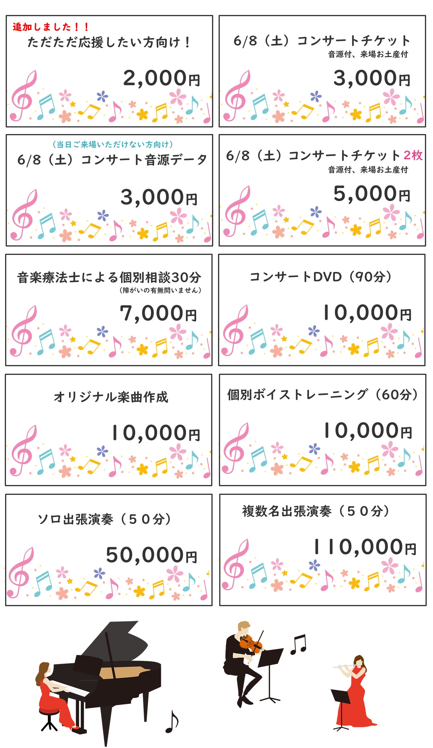 ①音楽奏者さんへの出演料と交通費