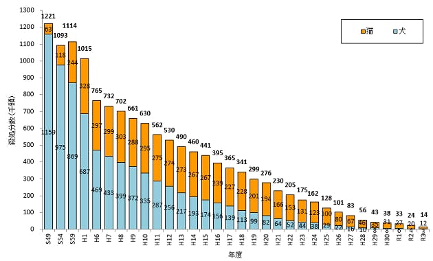 環境省が公表した最新の犬・猫の年間殺処分数が「14,457頭」。