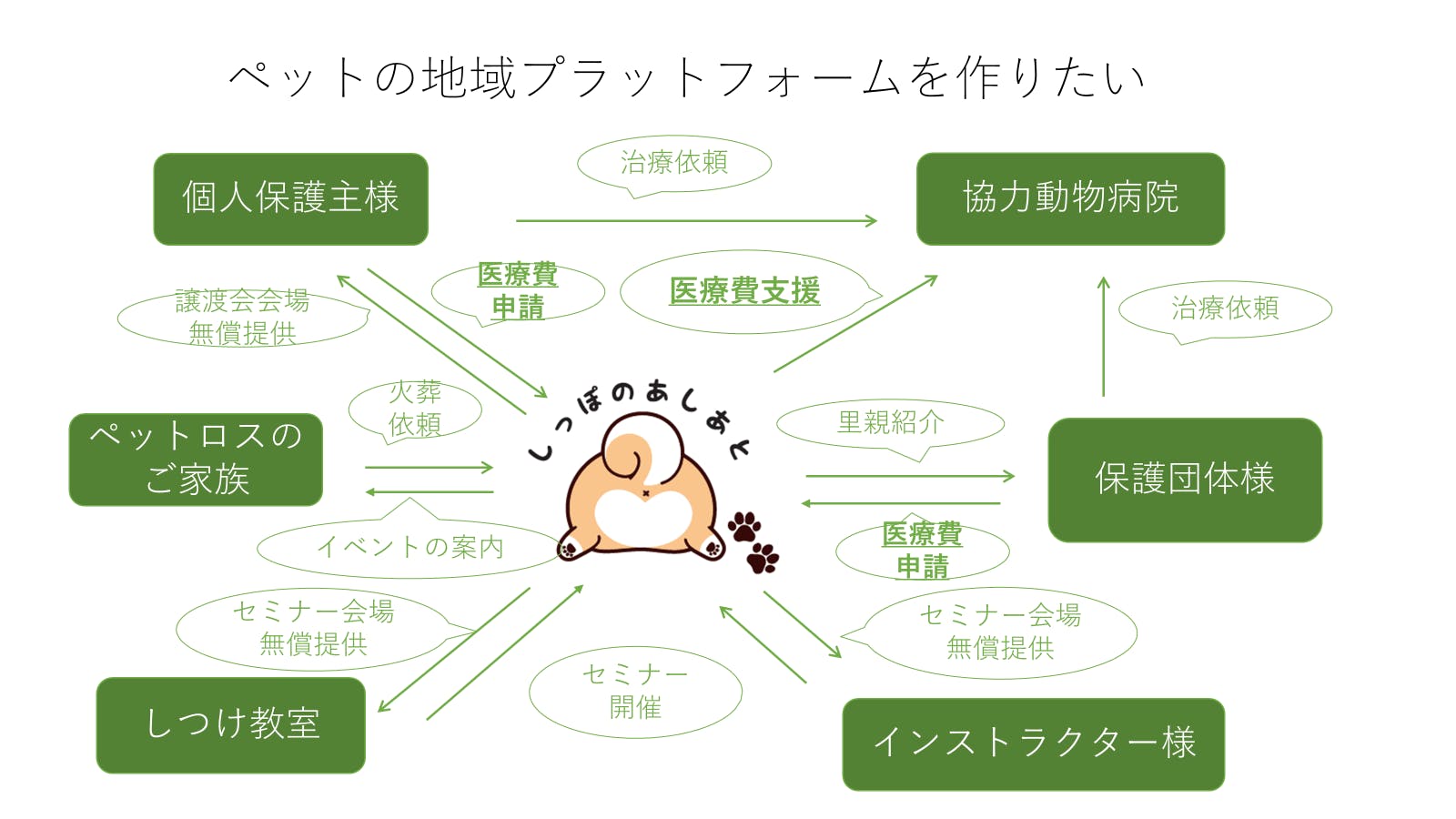地域のプラットフォームを作り、ペットロスの方や里親希望の方とのマッチングを図る事。