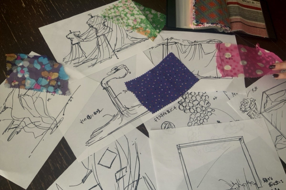 現在、プロジェクト達成を信じて、大量にある生地の選別を進行中です。また、母娘で紡ぐ物語をテーマのこの個展で生地の柄、色、素材、などの一貫性、どう見せるか、どう魅せるか、と思考を巡らせております。展示会場の予約や宣伝活動なども進めており、個展を成功させるための準備を整えて行っております。