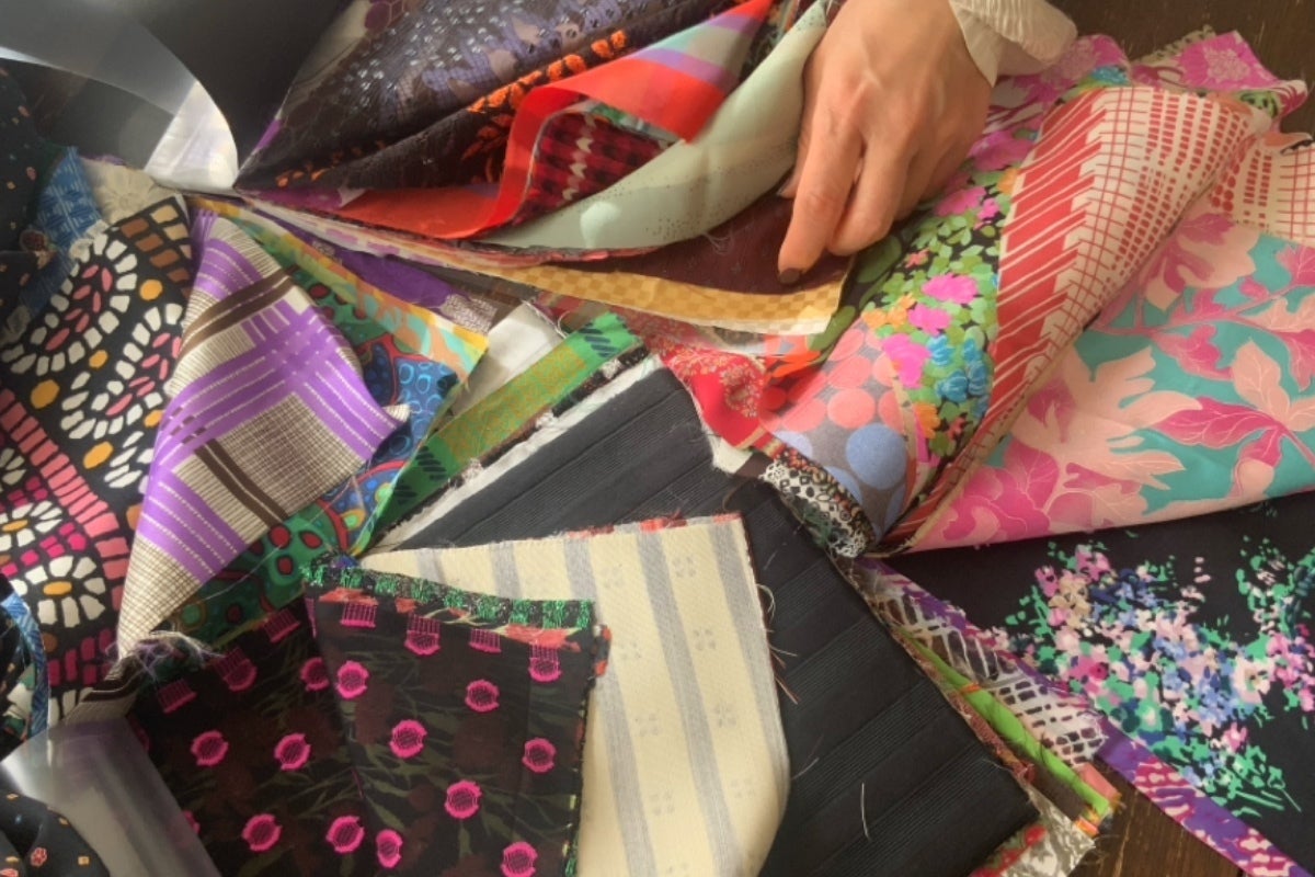 大阪の中央区でオートクチュールの洋装店を営んでいた母が自身のセンスで世界中から探し、選び、買い付けて来た素敵な生地が大量にありました。ファッションデザイナーの母が生前とても愛していた生地。その生地の柄、図案は本当に素敵で保存状態も良いまま、、、手をつけていませんでした。その価値ある生地が誰の目にも触れる機会を失ってしまっていました。本来なら服を作るところですが、生地の持つポテンシャルを最大限に引き出す技術が無く、生地を台無しにしてしまう恐れもあり扱いに困っていました。