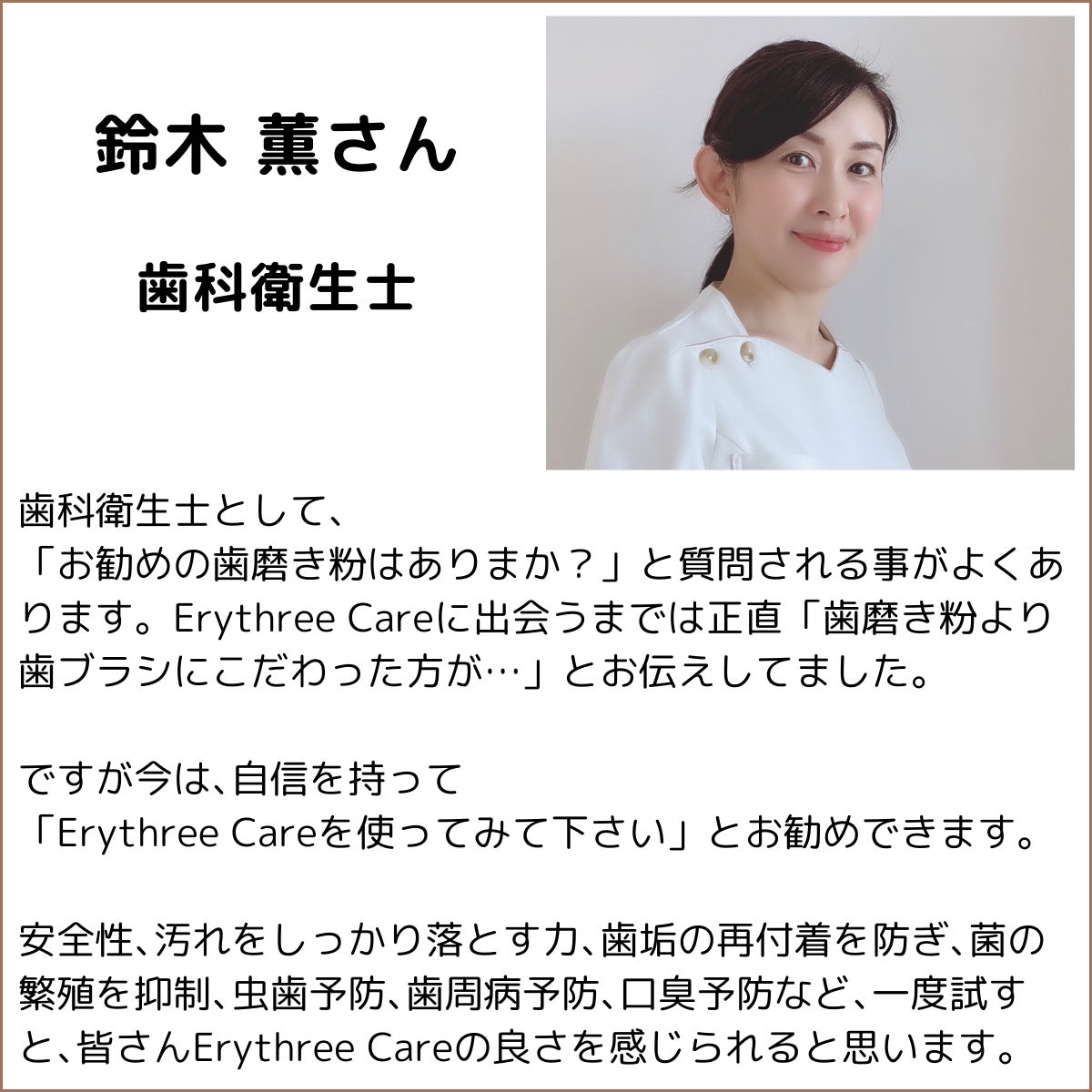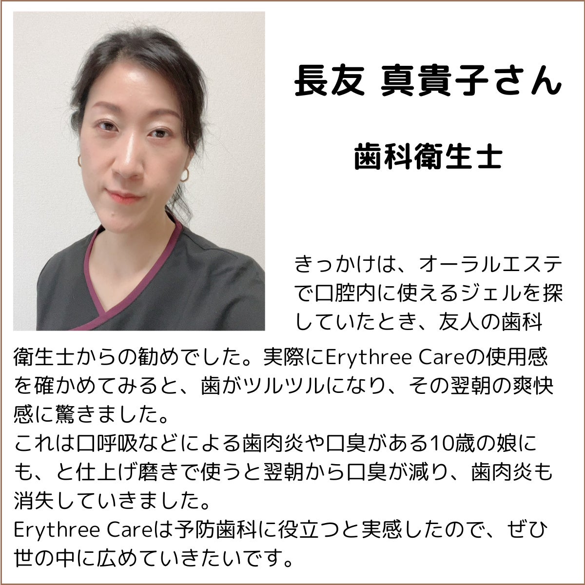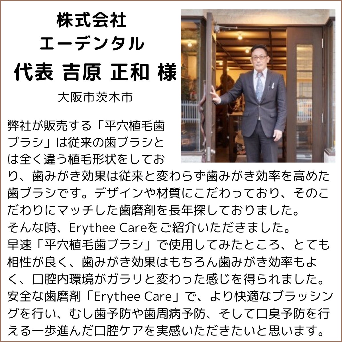 この思いに少しでもご賛同いただけましたら、「歯磨き」という毎日の習慣に、ぜひErythree Careを加えていただけないでしょうか。