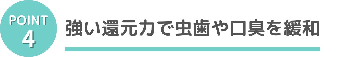 Erythree Careは PH10程度の強アルカリであることから、虫歯や口臭の原因となる口腔内の酸化を緩和します。