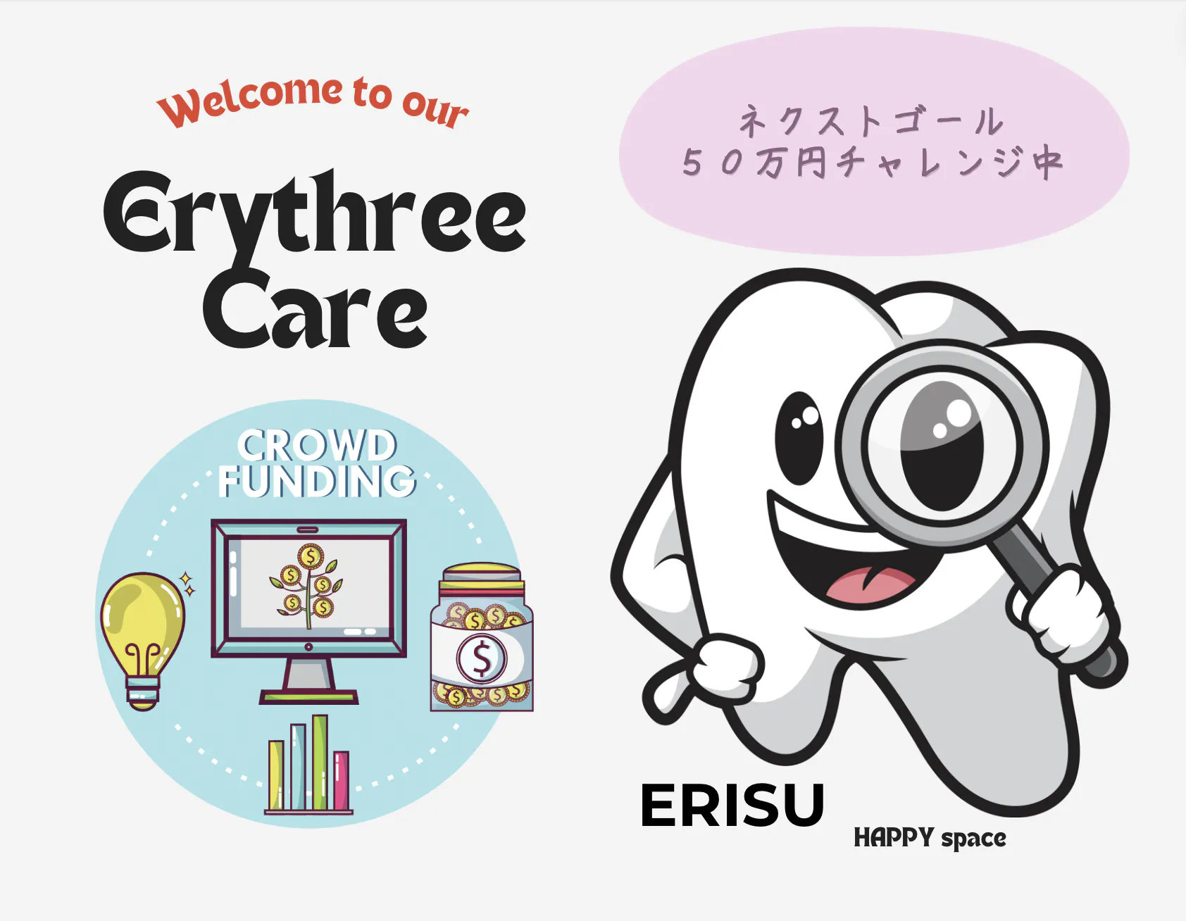 ご支援いただきました資金につきましては、Erythree Careの宣伝広告費、HP制作費用の一部として大切に使わせていただきます。