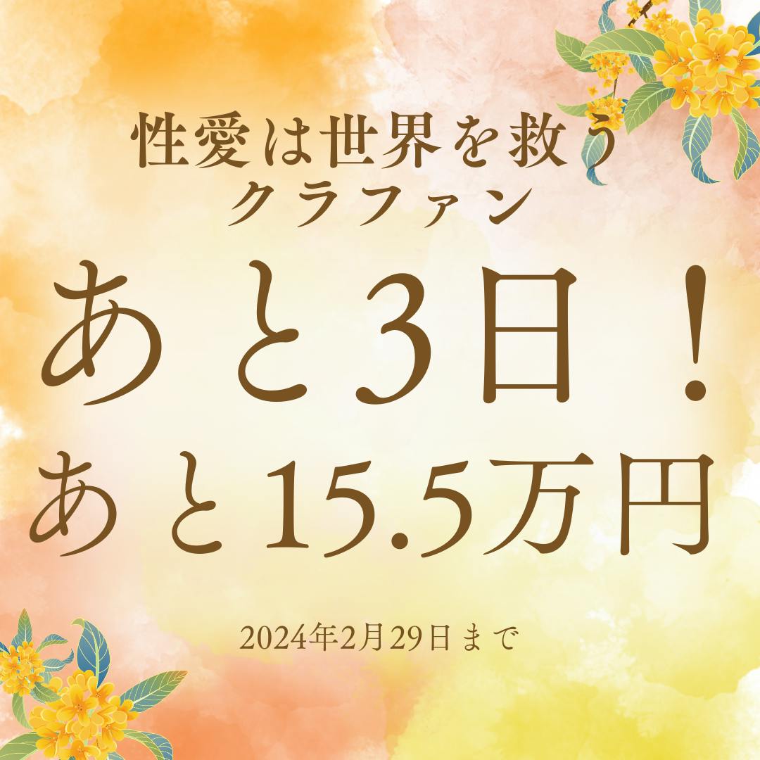 みっちさんは、強いですね!と、よく言われます。確かに・・・アルコール依存症の父の元に育ち離婚とシングルマザー、組織の崩壊とか倒れても起き上がってきた・・・そんな人生でもありました。2度の離婚も、めげて落ち込んでもうダメだーって絶望したこともたくさんありました。でも・・・みなさんと同じ、弱い人間です。こうして、クラファンを実行して残り、2日となりました。こうしてご支援くださったいる皆様方へ、感謝がわくと共に達成をあきらめそうになる私も正直います。もう向き合いたくない。もういいじゃない達成しなくても・・・何も変わらない・・・そんなことが頭をよぎります。クラファンを達成しなくても、死ぬわけではないなんてあきらめを観てしまう。そんな自分がいるのです・・・・でも、今回の支援で、応援支援のメッセージをみなさん入力くださるじゃないですか?そのメッセージを観る度に勇気をいただくんです・・・・・みっちさんがんばってください応援していますーずっと、大好きですって・・・力がわくんです。落ち込んで、ぐずぐずして、泣いて、自分のふがいなさが惨めで・・・でも、みなさんに支えられているのです。あと・・・2日。がんばります。最後まで、どうぞ・・・見守っていてくださいね追加支援をお願い出来るかたおられましたら助かります。そして、SNSなどでご紹介いただけましたら助かります・・・そして、追加支援をここまでくださったみなさま。毎度、温かいメッセージをくださるみなさま・・・本当に・・・ありがとうございます。最後まで・・・がんばります。①クラウドファンディングのリターンを買ってくださいみなさんに喜んでいただけるリターンを心を込めて準備しました。気になるものがあれば、買っていただけると嬉しいです。②クラウドファンディングの告知を手伝ってくださいSNSや口コミで「こんなクラウドファンディングやってるよ!」と広めていただけると、大変助かります。1人で広めるには限界があるので、たくさんの方にシェアしていただけるとありがたいです。