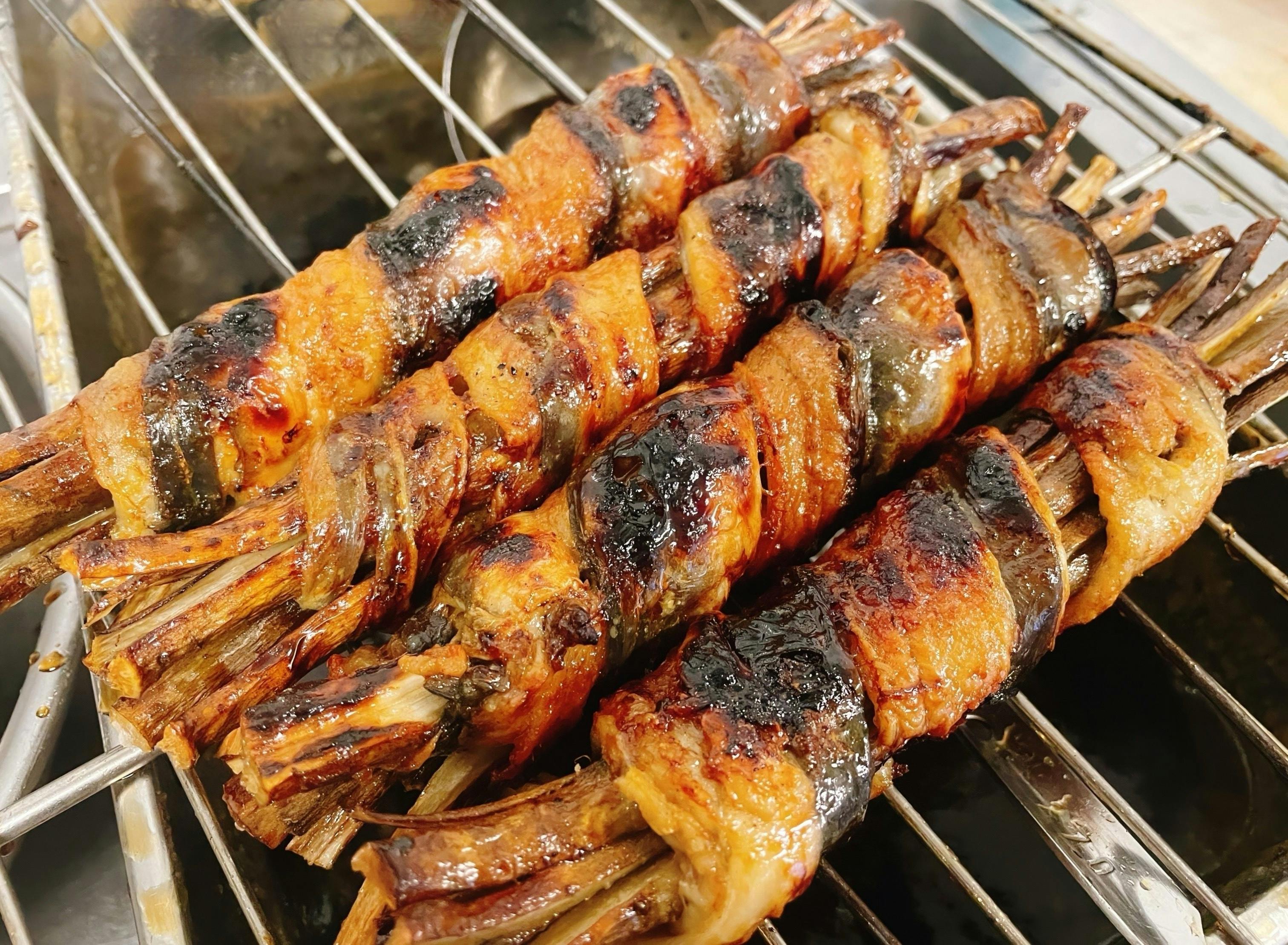 生の牛蒡を割き鰻で巻き上げ冷蔵庫で一日締め、翌日一時間かけて弱火でじっくり焼き上げております。鰻と牛蒡の相性がとても良い商品ですので是非召し上がっていただきたいです。