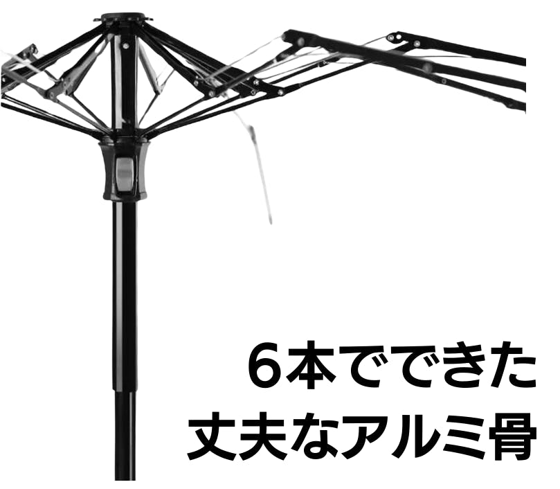 A.アルミの6本の親骨で構成されており、また丈夫で柔軟性があります。ので安心してご利用できま