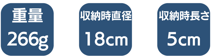 A. 高さ18cm,直径5cmでございます。(畳み方によって多少変わります。)