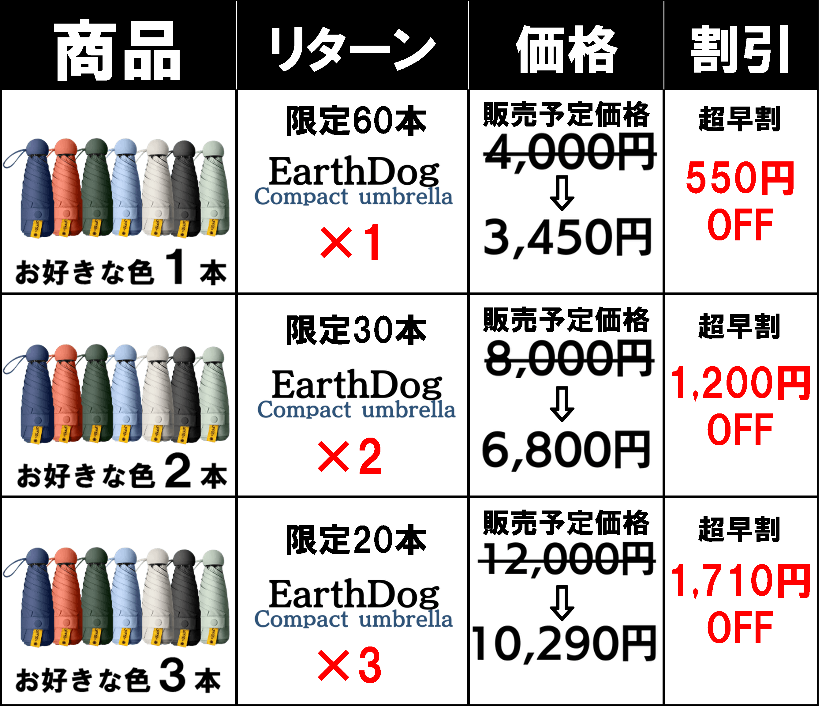 ・クラウドファンディング後の販売予定価格は、将来の量産数の変動や在庫期間などにより、小売価格が変動する可能性がございます。