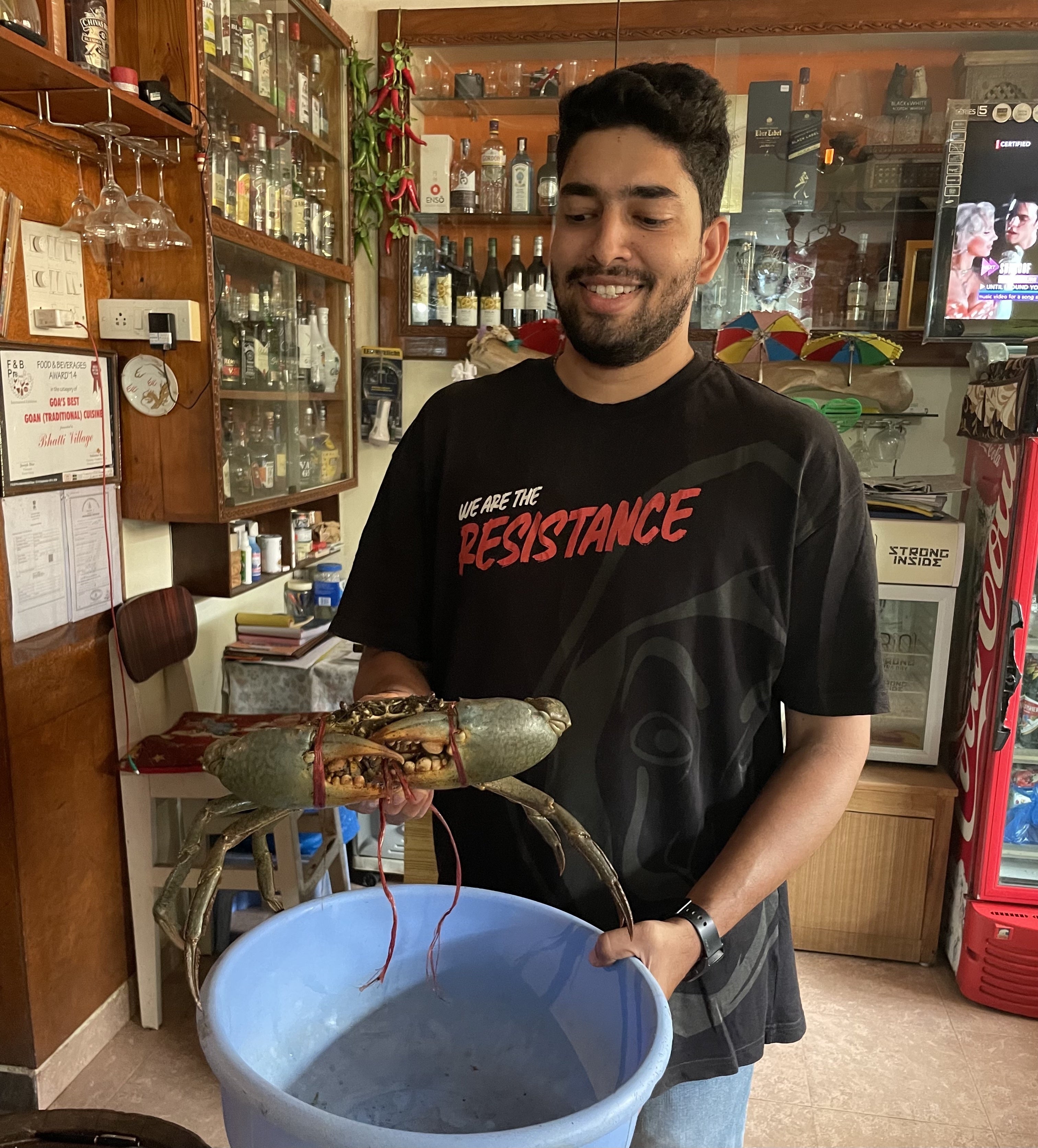 ゴアはシーフードでも有名で、調理前の現地の蟹を見せてもらいました。