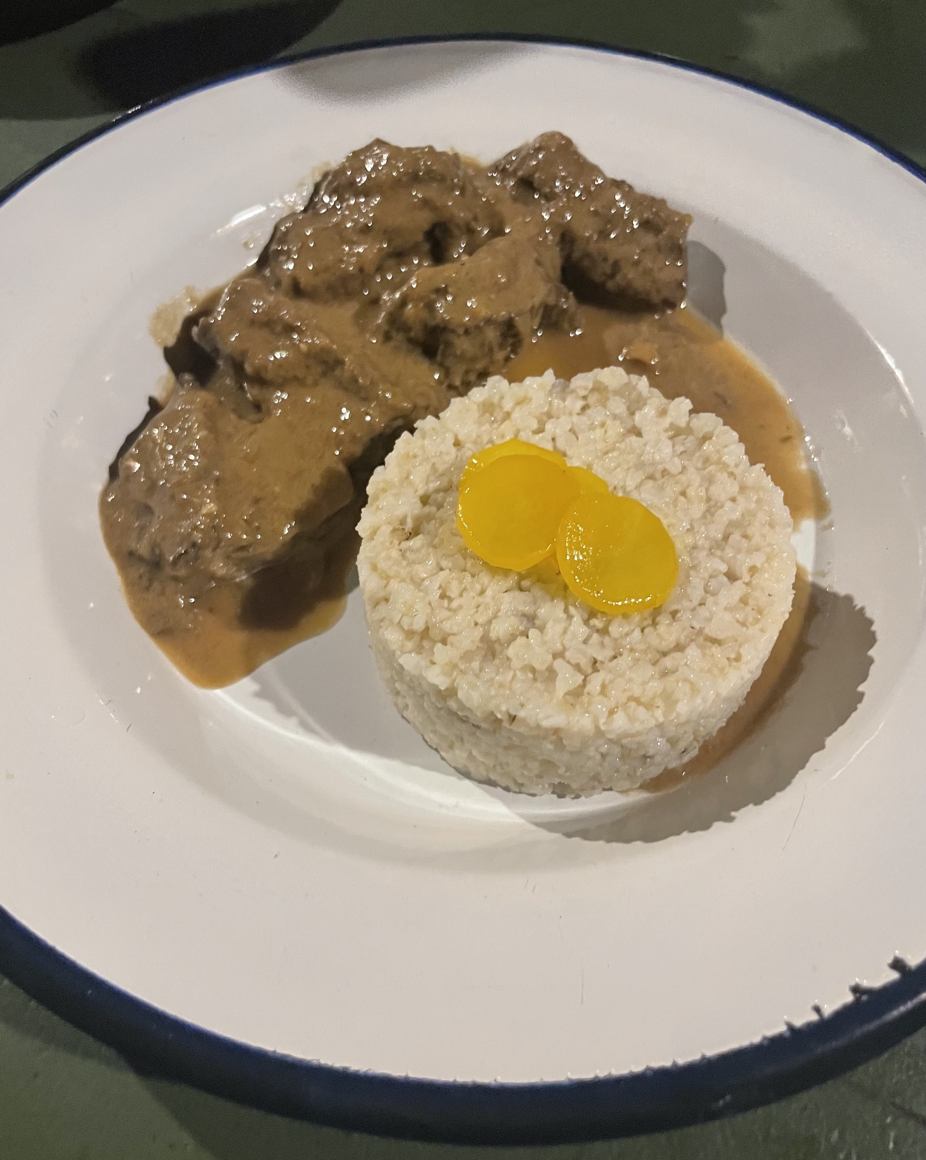 ポークヴィンダルーの他にも伝統的なゴア料理を食べましたが1番衝撃を受けたのはこのサマラッチコディというカレーでした。