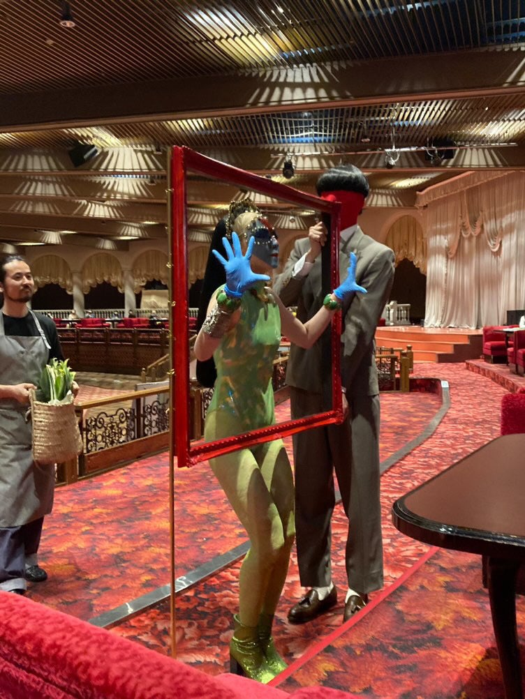 熱海のアートイベントでミールスアートとして出展しました。インドの神様に扮しているのはダンサーのアオイヤマダさん。