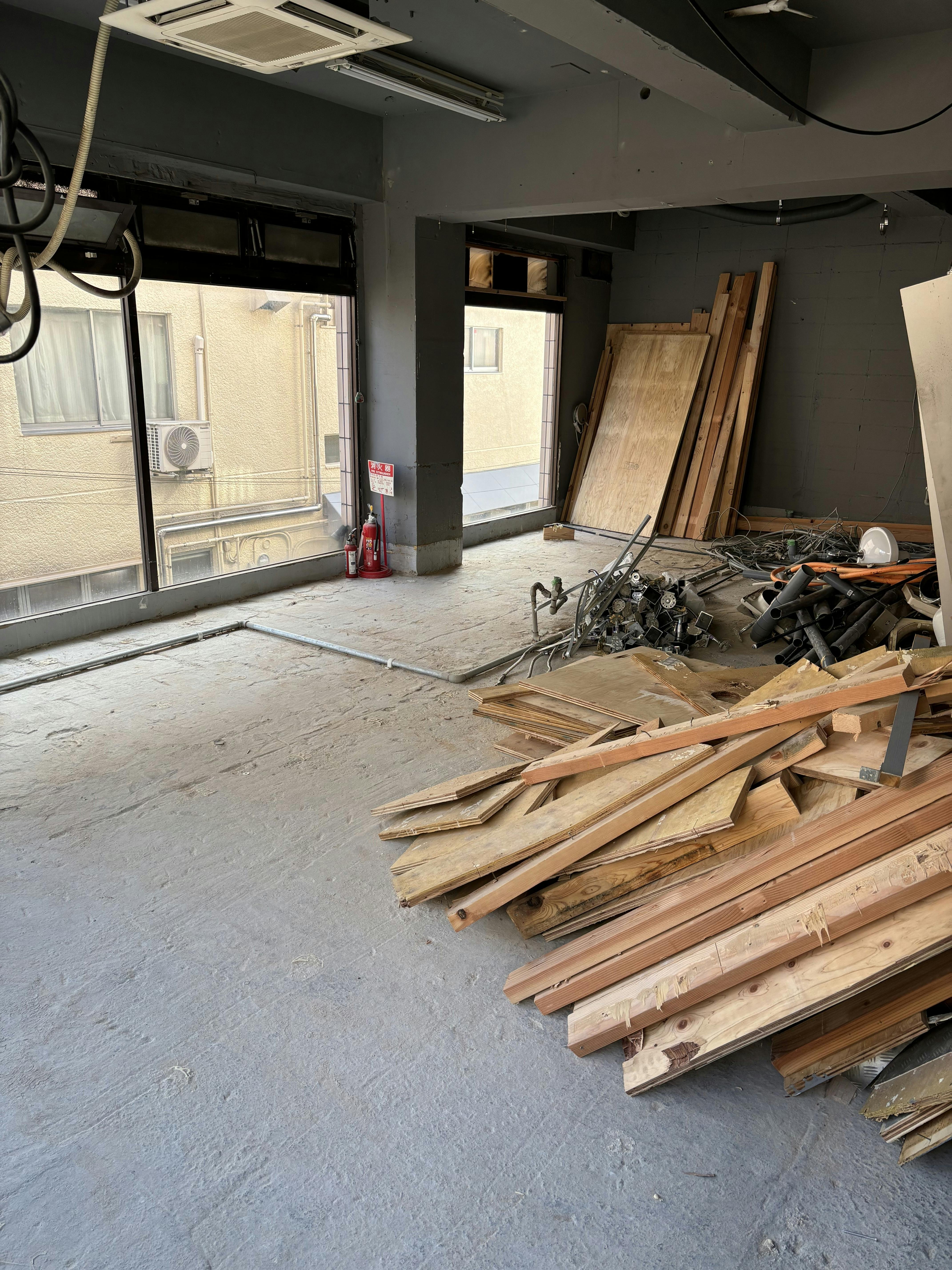 飲食店は普通は工務店さんに頼んで工事をしてもらうのですが予算の関係で自分達で大工さんに指示を出して工事を進めてもらう事になりました。