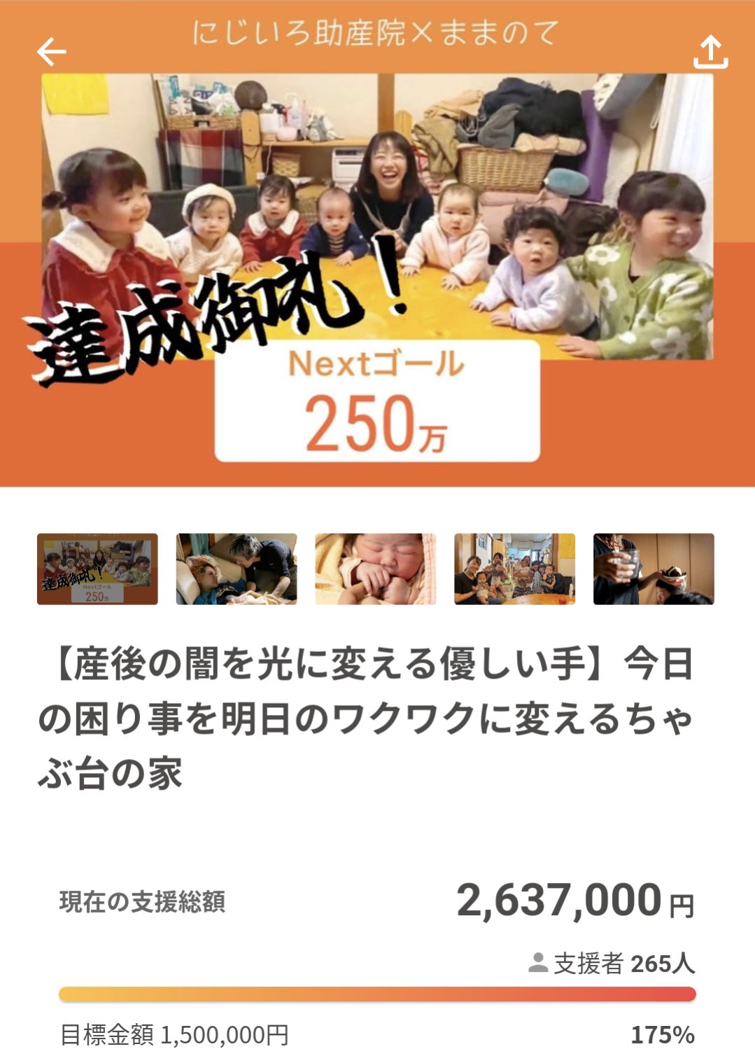 おはようございます。ままのてプロジェクトオーナーの北田です。たくさんのご支援ありがとうございました。おかげさまで、ネクストゴールも達成されました。心から感謝いたします。みな様からいただいたご支援は形としてはお金。それは、大切な想いや時間のつまったものだと思っています。皆さまの大切な想いや、いのちの時間を費して得られた対価。その大切なものを私たちの「こんな世界がみたい!」に投じて下さった本当に有り難いことだと思っています。クラウドファンディング期間には、自分を問われるような時間もありました。だけど、やっぱり私には出来ないことがたくさんあります。なんなら、出来ないことだらけ。だから仲間が必要。思いきって「助けて」と手を上げるとたくさんの手が助けてくると感じました。なんて優しい世界があるんだと心震える時間でした。きっと子育ても同じ。ひとりで出来ない。しなくていい。手を伸ばせば優しい手が握り返してくれる大切にされた経験はいざという時のお守りになるそして、大切にされた手が次の手を握り返す。そんな優しさの世界ならばきっと子どもたちも自分は大切にされているこの世は生きてる価値があると思える。みんなで、明日にワクワクする。私はクラウドファンディングを通してそういう世界を体感しました。こんな世界があることを、子どもたちに伝えたいと思いました。本当にありがとうございました。温かいメッセージにお返事が間に合っておりません。申し訳ありません。全て拝見し、元気をいただいています。ありがとうございました。これから、心をこめて返礼品をお届けしていきます。そして、ここから!ままのて4月オープンに向けて準備を整えていきます。みな様によきご報告ができるようにみんなで頑張ります!楽しみにしていて下さい☆これからも、どうぞよろしくお願いいたします。感謝の気持ちをこめて♡ままのて北田&チームままのて