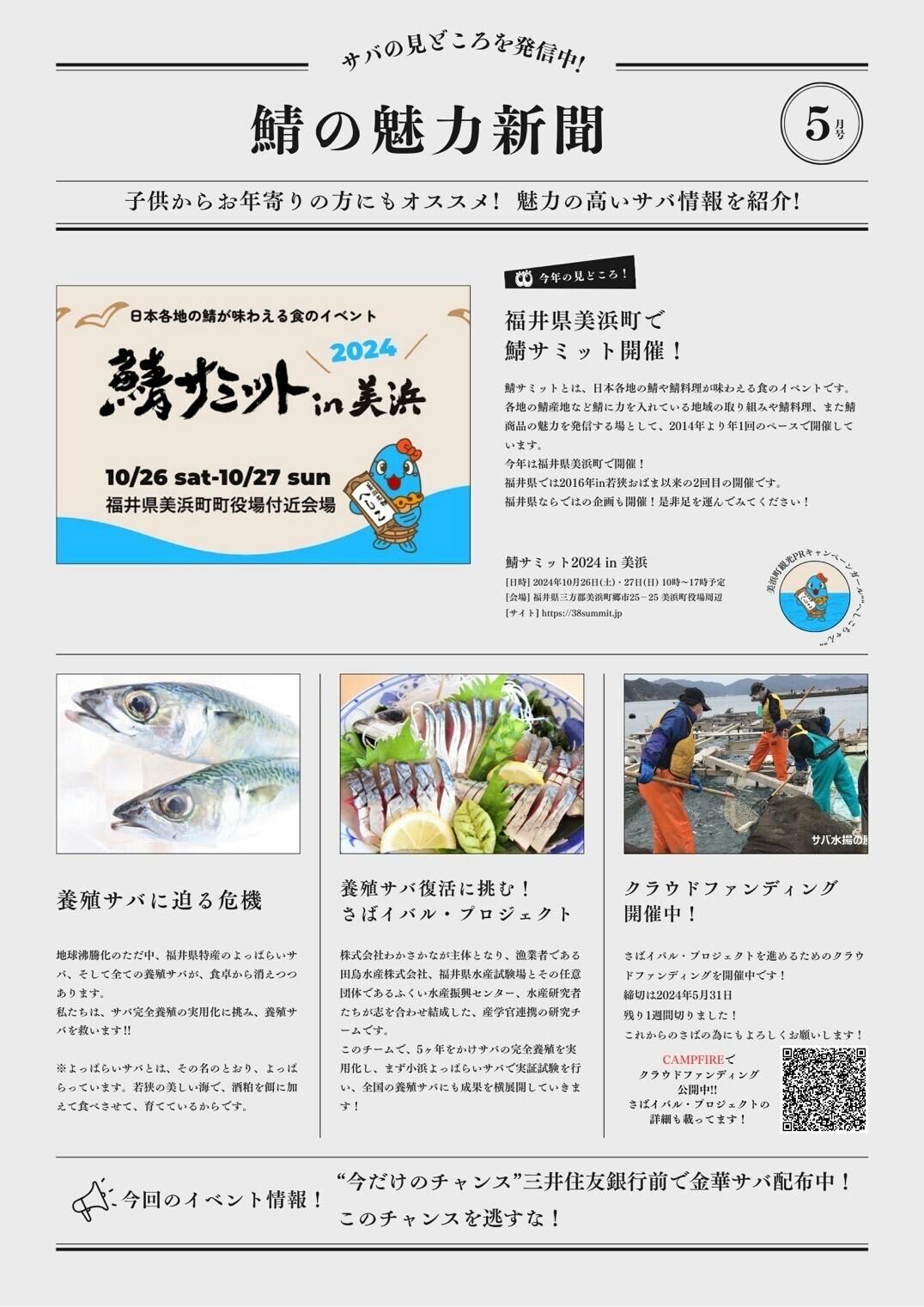 2024/05/21 11:00今朝の、福井新聞朝刊(というか、福井県に夕刊はない…)に、さばイバル・プロジェクトが掲載されました! もっと見る