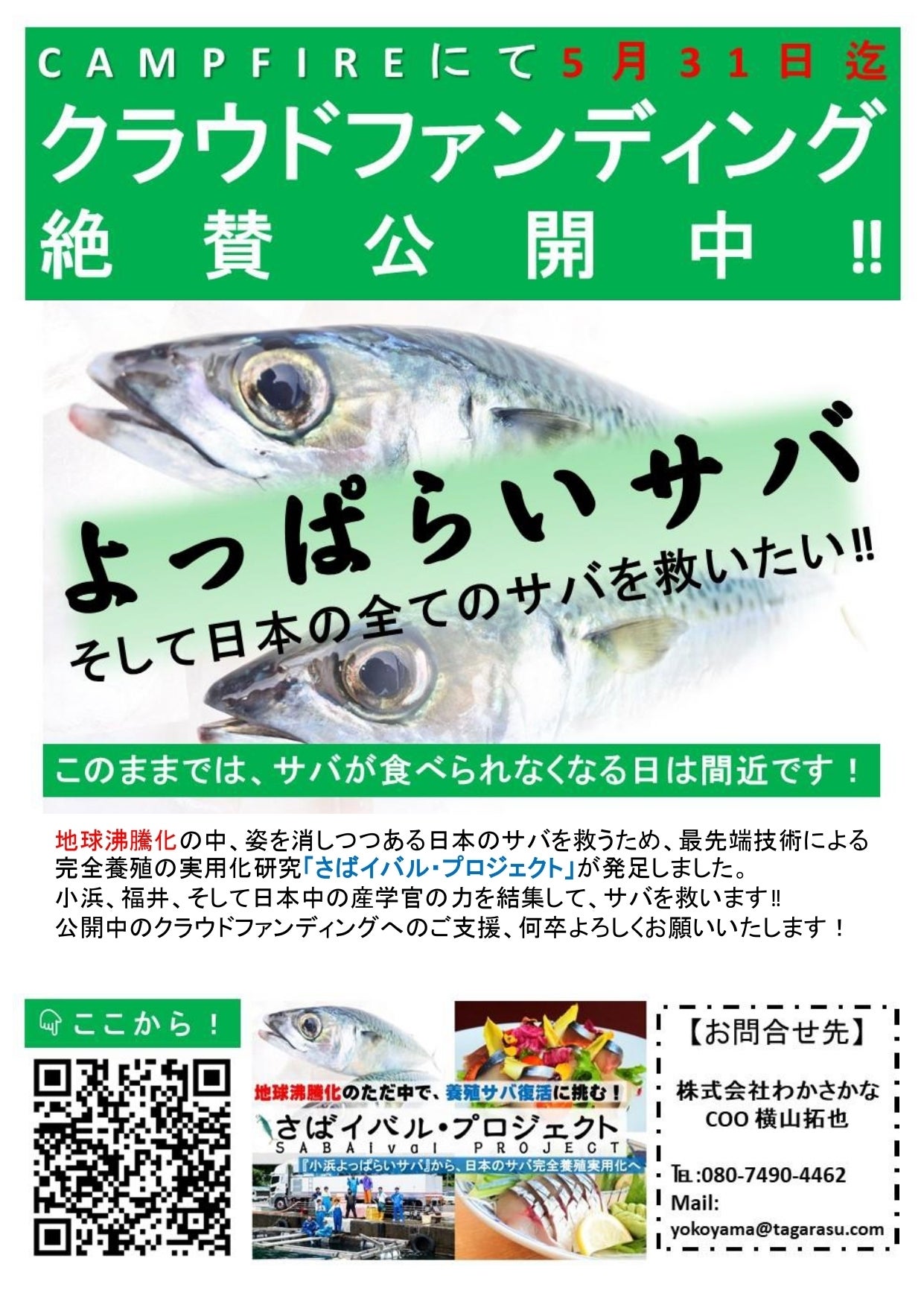 皆サバ、この1ヶ月間、ご支援・激励の数々、本当にありがとうございました。あと、十数時間、今夜23時59分までとなりました。112名の皆さまより、総額177万円のご支援をいただいております。あらためまして、お一人お一人の想いを受け止め、そして励まされております。選挙のように、最後まで…と言いかけ、いやこれからがスタート!と兜の緒をぎゅっと締めております。皆さまの想いに、全力でお応えしてまいります。写真は、先週土曜日に開催されました東急さま主催の鯖フェスにて、お配りいただいたものです。そこからも、たくさんの方がご支援くださいました。本当に、ありがとうございます!