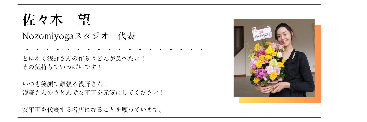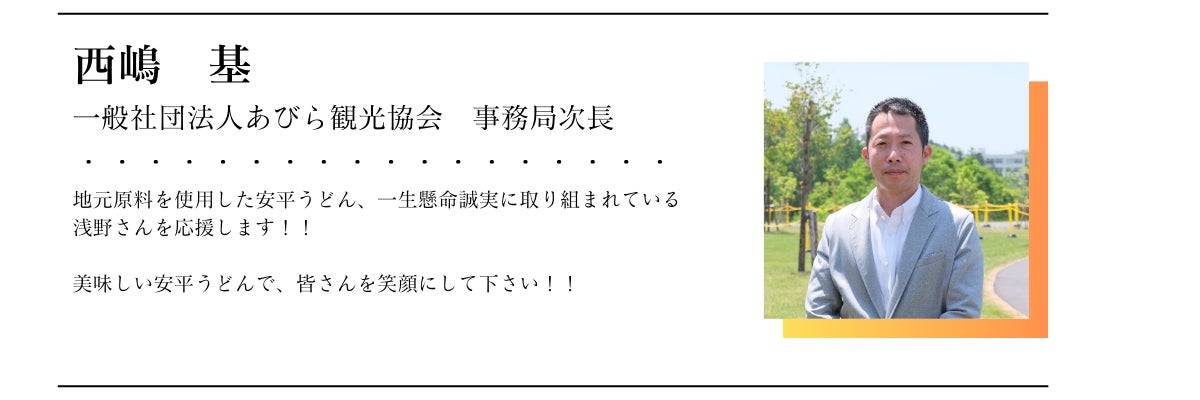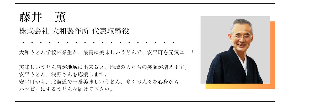 はじめまして。たくさんあるページの中から、このページをご覧いただき本当にありがとうございます。北海道で新たなうどんの文化を作るべく活動しています、安平うどん代表の浅野浩司と申します。