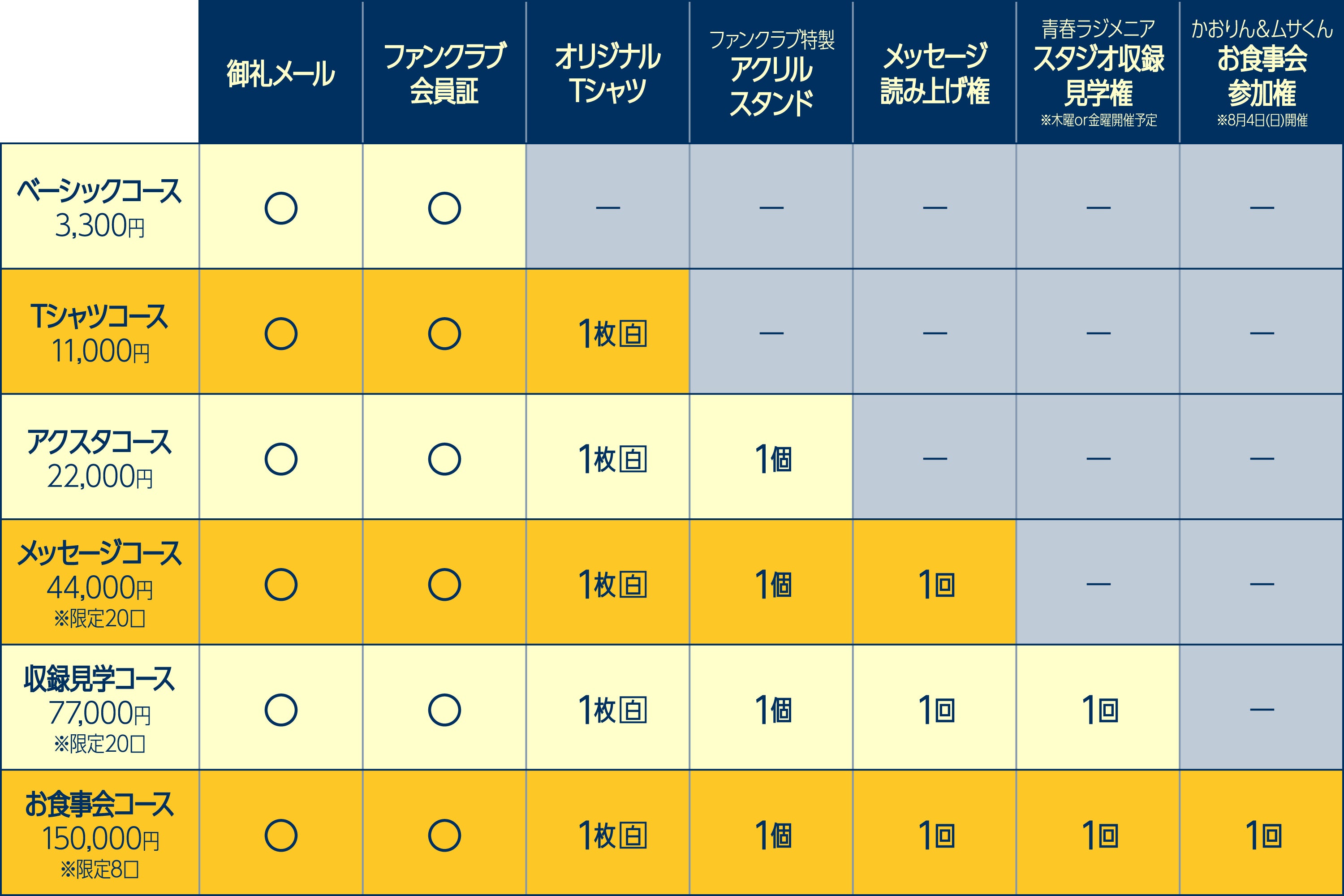 例えば、もれなく全員にお送りする毎年絵柄が変わる番組ファンクラブ会員証や、オリジナルグッズのプレゼント、さらには番組の収録観覧権など、普段は手に入れることのできない特典をご提供しています。