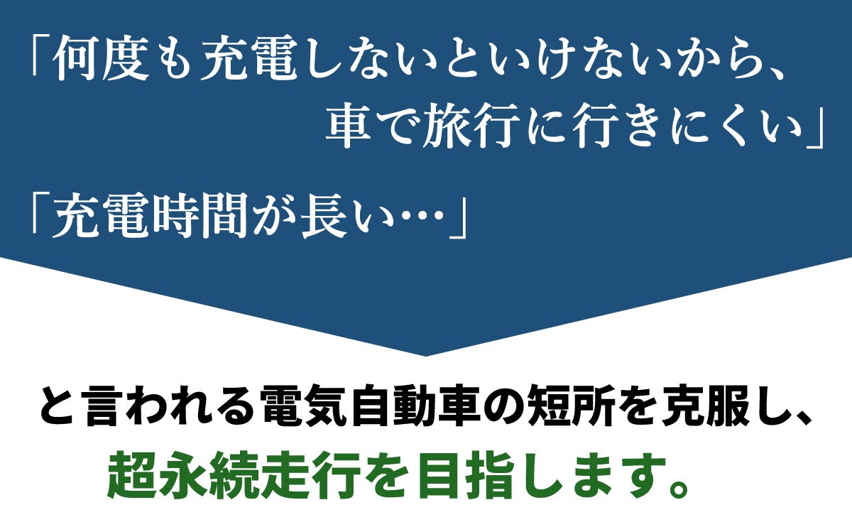その想いが「超永続的に走行する自動車をつくりたい!」というものです。