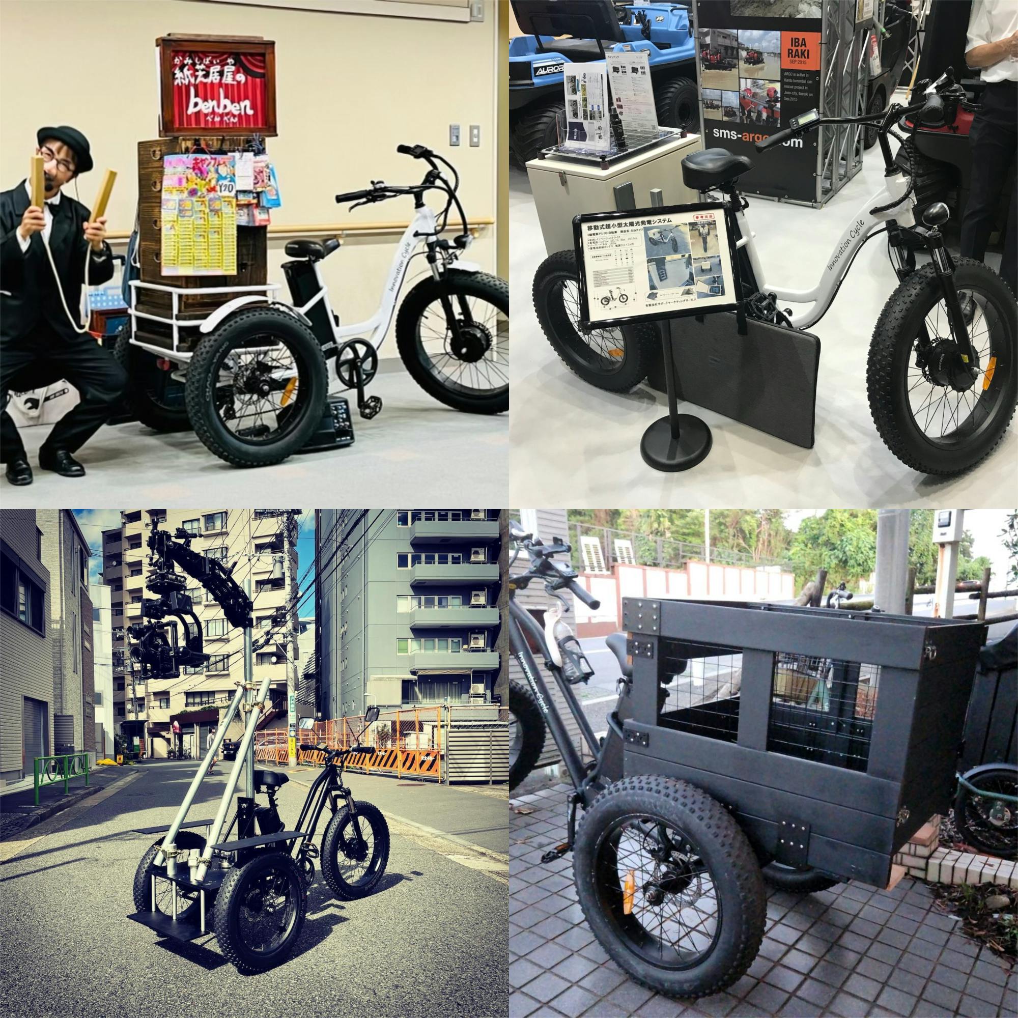 「北海道の牧場で使用されるユーザー様」、「撮影機材を積載してレンタルする企業様(実際、東京パラリンピックの追走撮影に利用されており)」、「高齢のご夫婦が、サイクリングする為に購入いただいたり」、「東北の果実農家のユーザー様が、収穫にご利用いただいたり」、「移動パン屋さんに販売用の店舗代わりの様にご利用にいただいたり」、「酒屋を営むユーザー様が重量のあるお酒の配達に利用されたり」、「居酒屋経営のユーザー様が、仕入れの買い物用に利用されたり」、「思春期の障害がある息子様のために、少しでもカッコ良い移動手段(通学用)の三輪自転車を探されているご両親からのプレゼントにご利用いただいたり」、「お身体が脳梗塞後、半身麻痺にあわれ、リハビリ用でご利用いただいたり」、その中では、「普段スポーツサイクリングでツーリングされているユーザー様が、半身麻痺にあわれ、弊社の電動三輪自転車で、以前のお仲間と現在もツーリングが再開でき、ツーリング仲間の方に涙で喜ばれたり」、「半身不随のユーザー様が片手でブレーキ操作や変速操作ができる様に改造され、ユーチューバーとなられ、最終的には滋賀県の琵琶湖一周を計画されていたり」、「高齢のユーザー様が、フェリーに乗り電動三輪自転車で北海道一周の旅をされたり」。