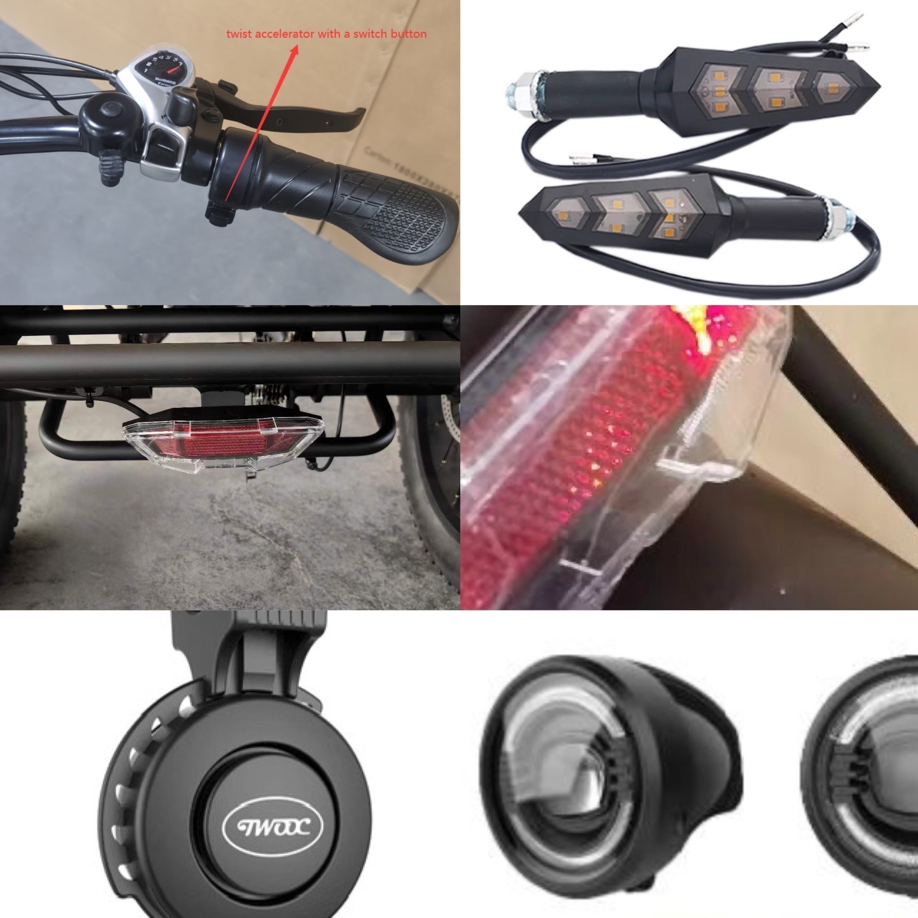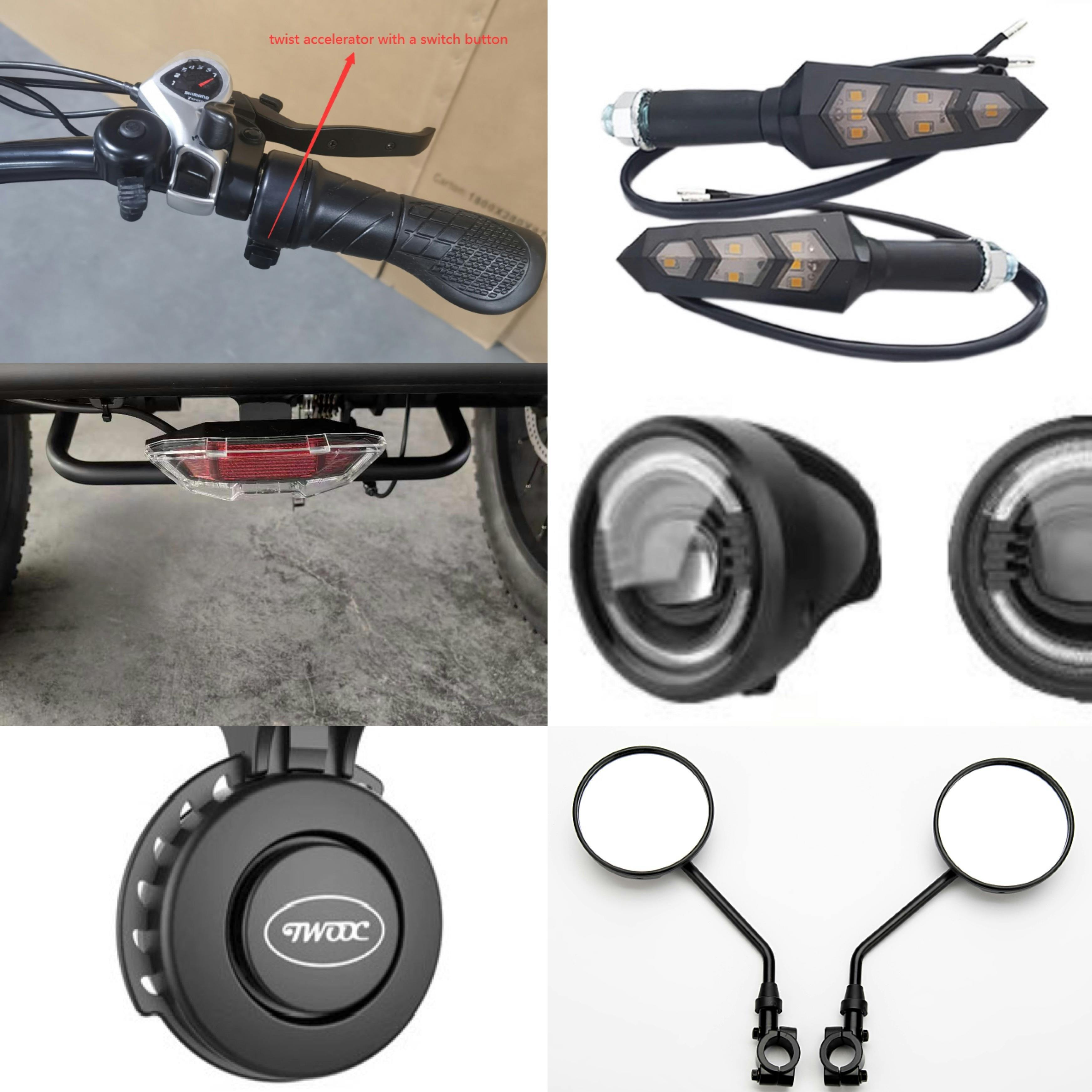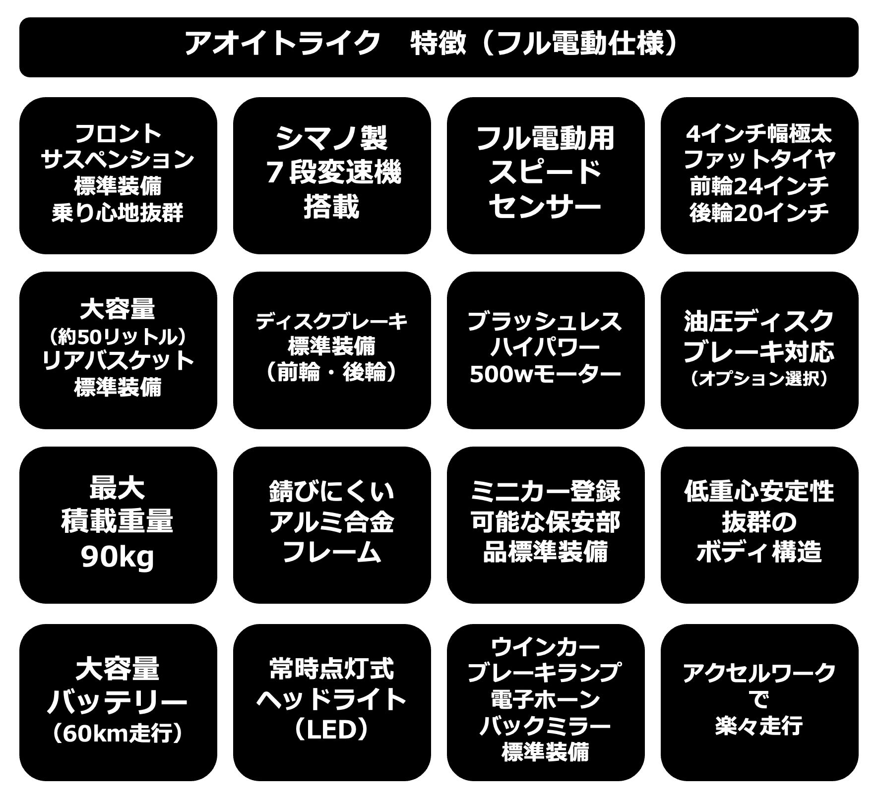 フル電動用標準装備品:ヘッドライト(高輝度)・ウインカー(方向指示器)・ブレーキランプ・バックミラー・電子ホーン・ナンバープレート取付ステーなど。