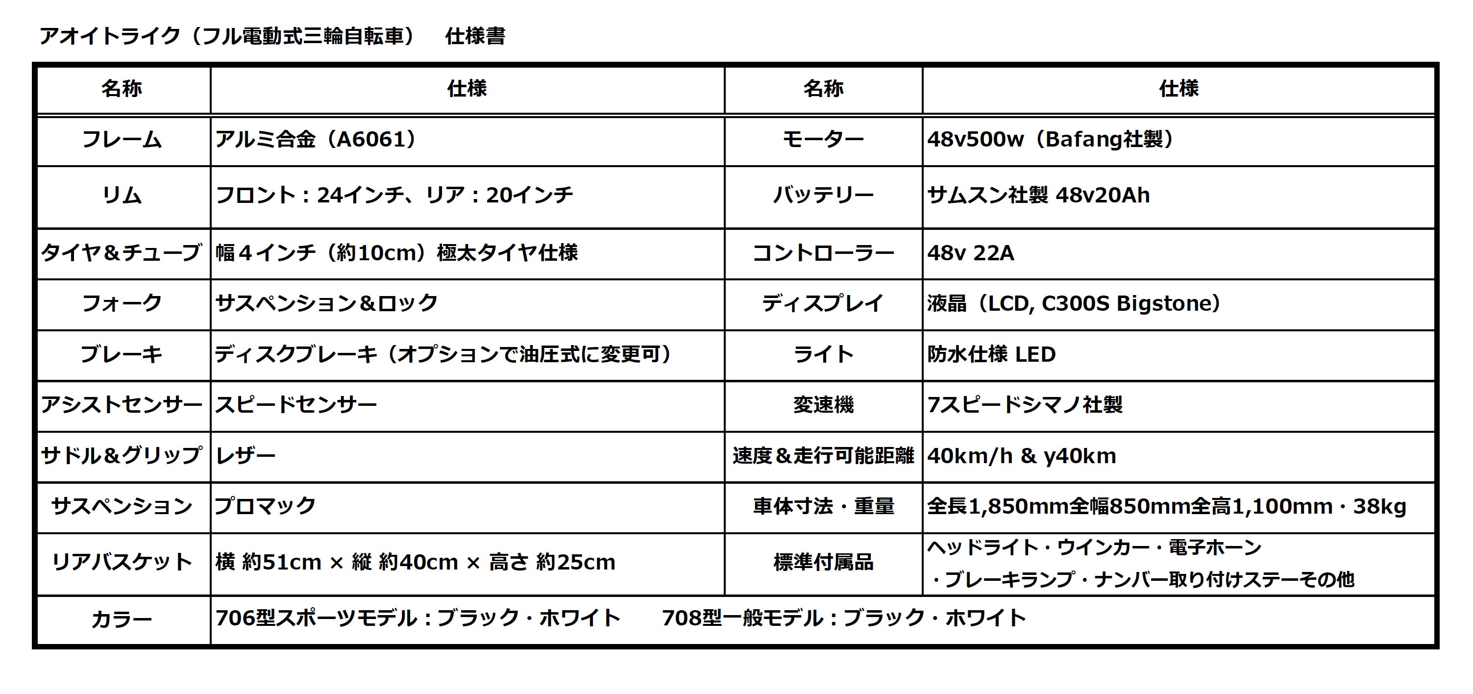 (1)弊社フル電動三輪自転車製品(アオイトライク フル電動仕様)についての保証対象とその条件定義説明