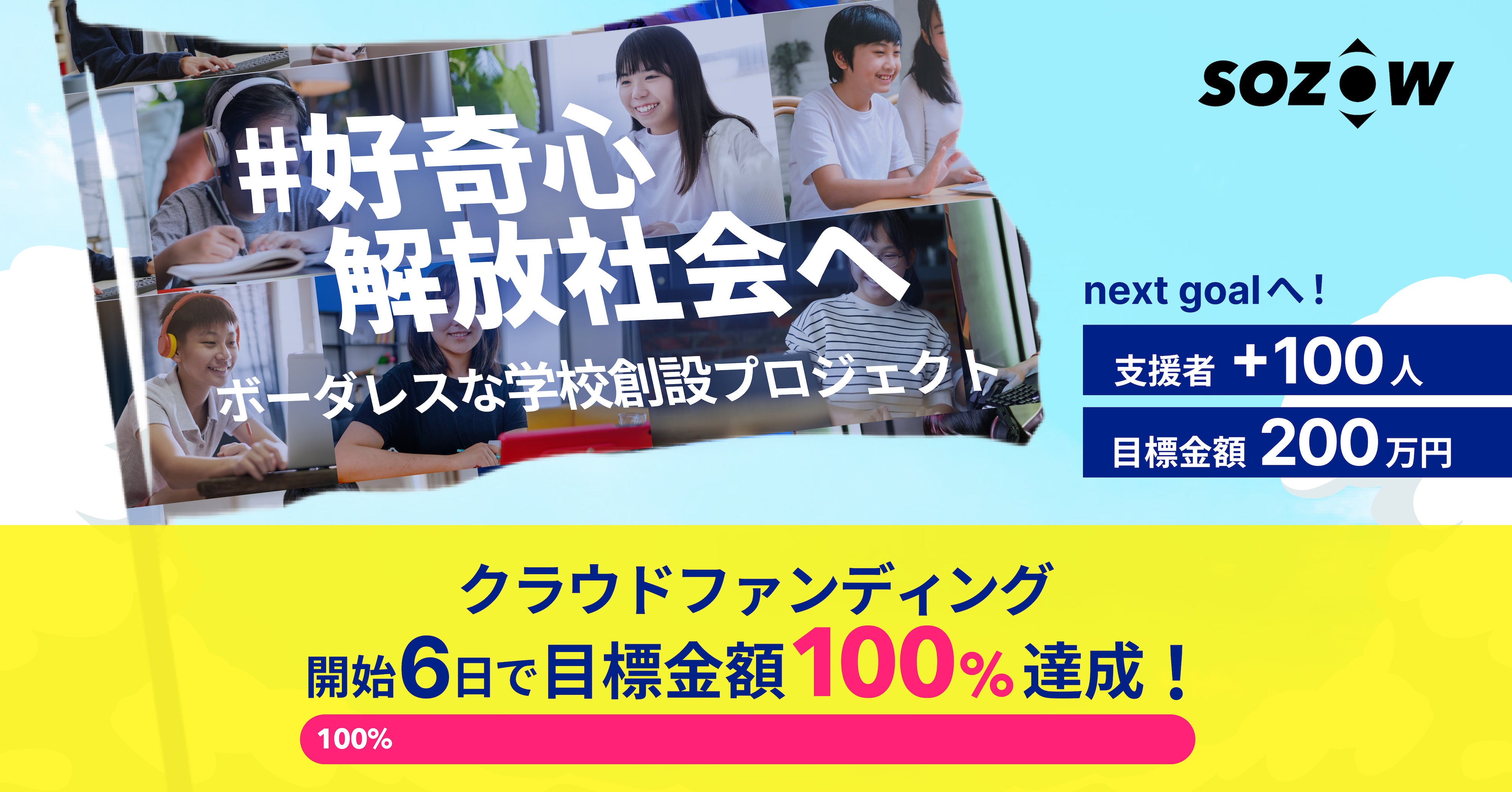 「SOZOWスクール高等部」を共につくる仲間、応援してくれる仲間を【さらに100人】集める目標を定め、