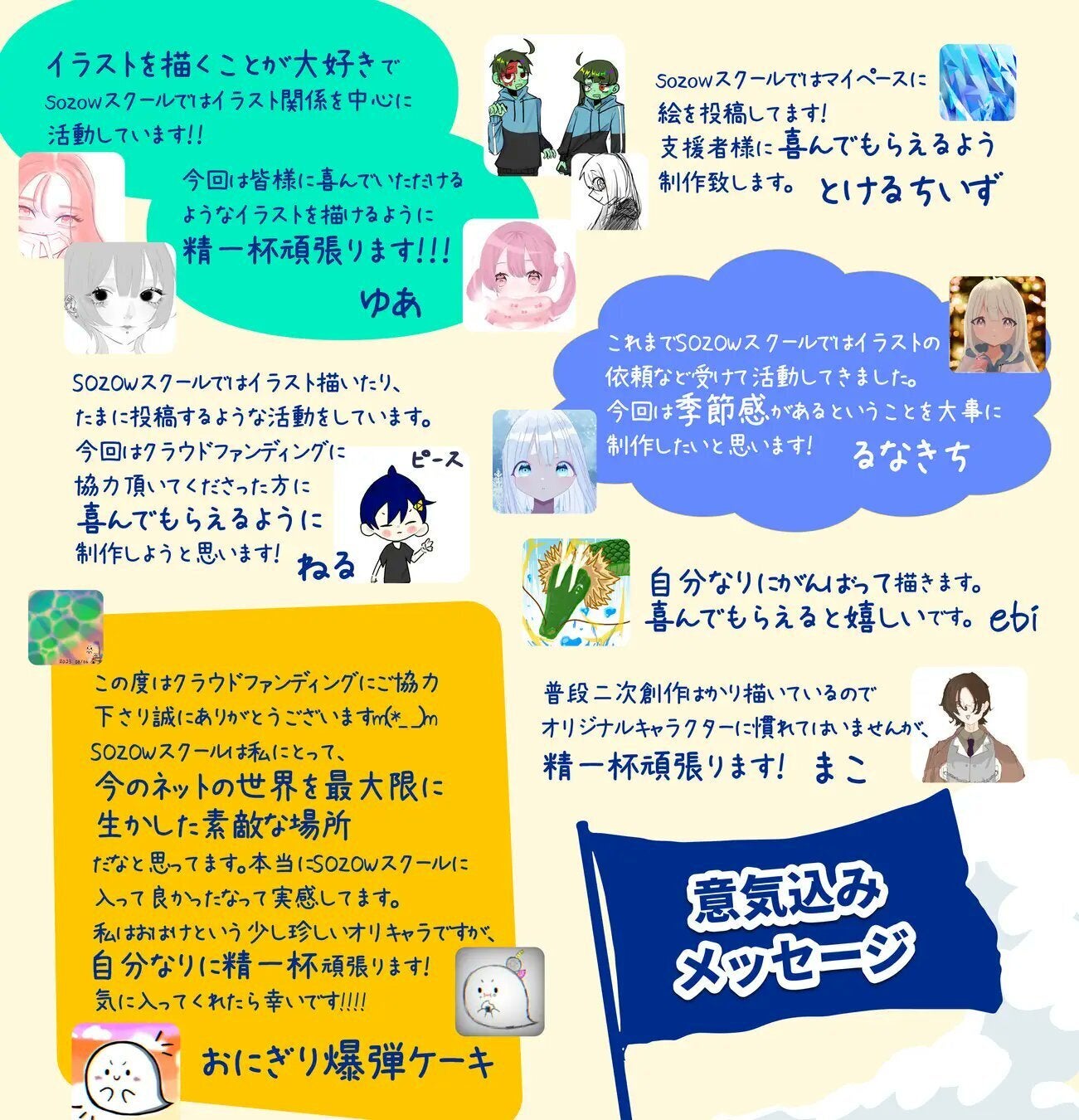 リターン内容:14名の小中学生「絵師」が希望テーマに応じて制作するアイコン用イラスト
