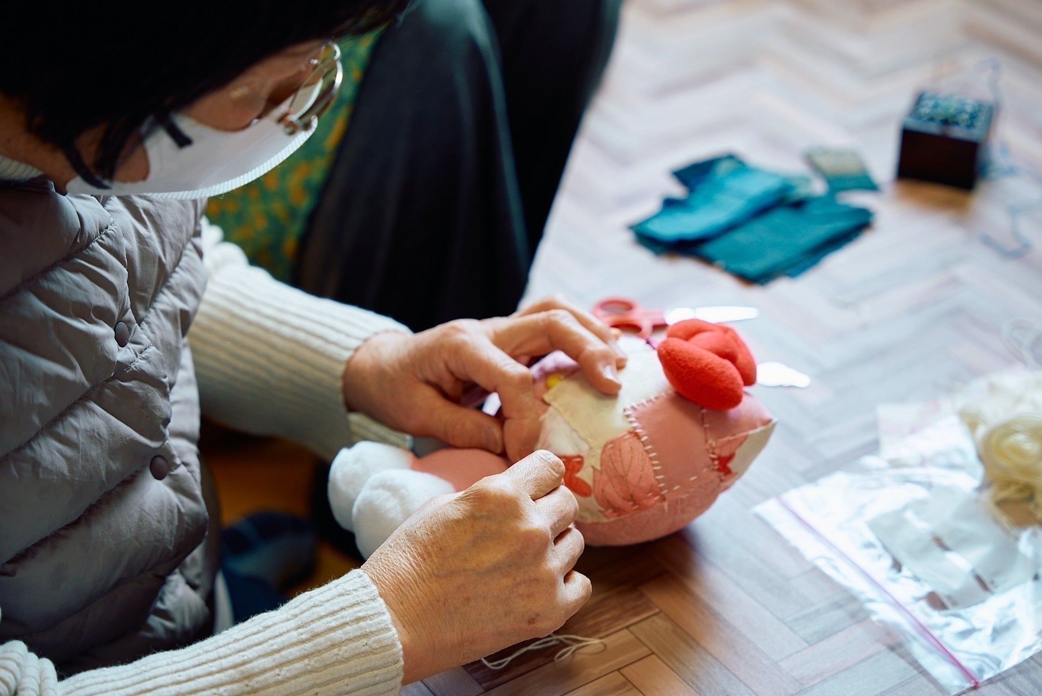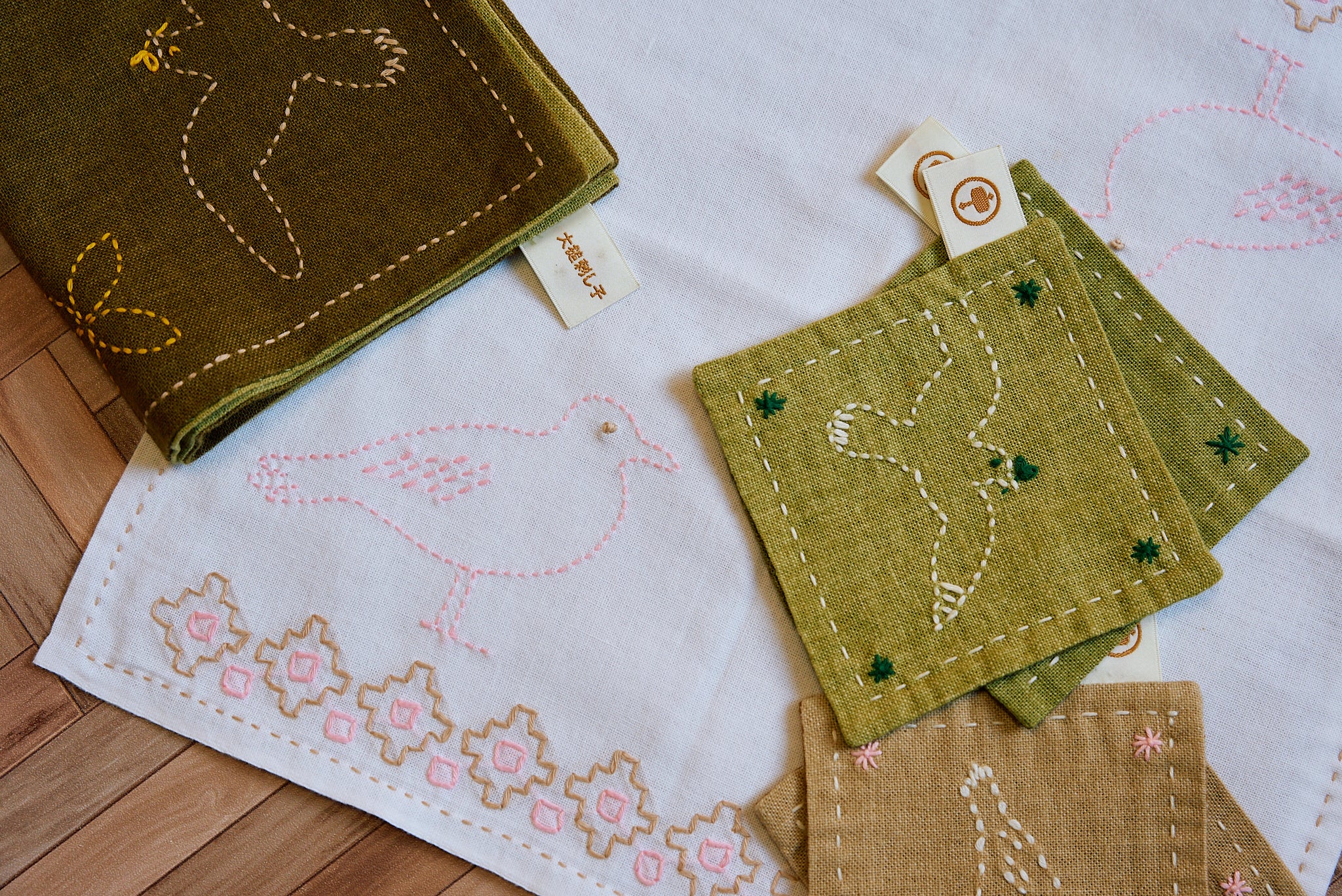 当初のメンバーは未経験者ばかりで、技術の習得からスタートしました。メンタルヘルス対策としても効果的な刺し子に、おかあさんたちは救われたと言います。実績と信頼をコツコツと積み重ねてきて、今では“日本屈指の刺し子職人集団”と胸を張って言えるようになりました。