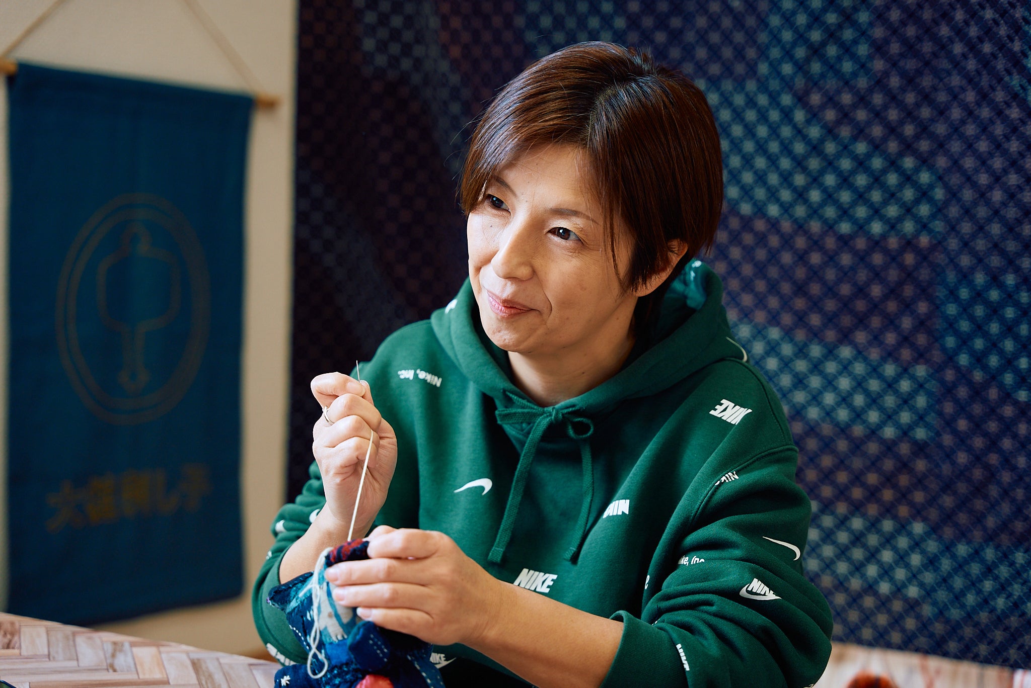 「刺し子を始めて13年目になります。こんなことも自分たちはできるんだ!とか、何でもやってみないとわからないもんだ!とか。刺し子をしていると、いろんな発見があって楽しいです。あとは、癒し効果もあると思っていて。集中しないと針目が歪んでしまうので、作業中は無心を貫いているんですよ。いろんなことを忘れられるから、良いリフレッシュになっています」