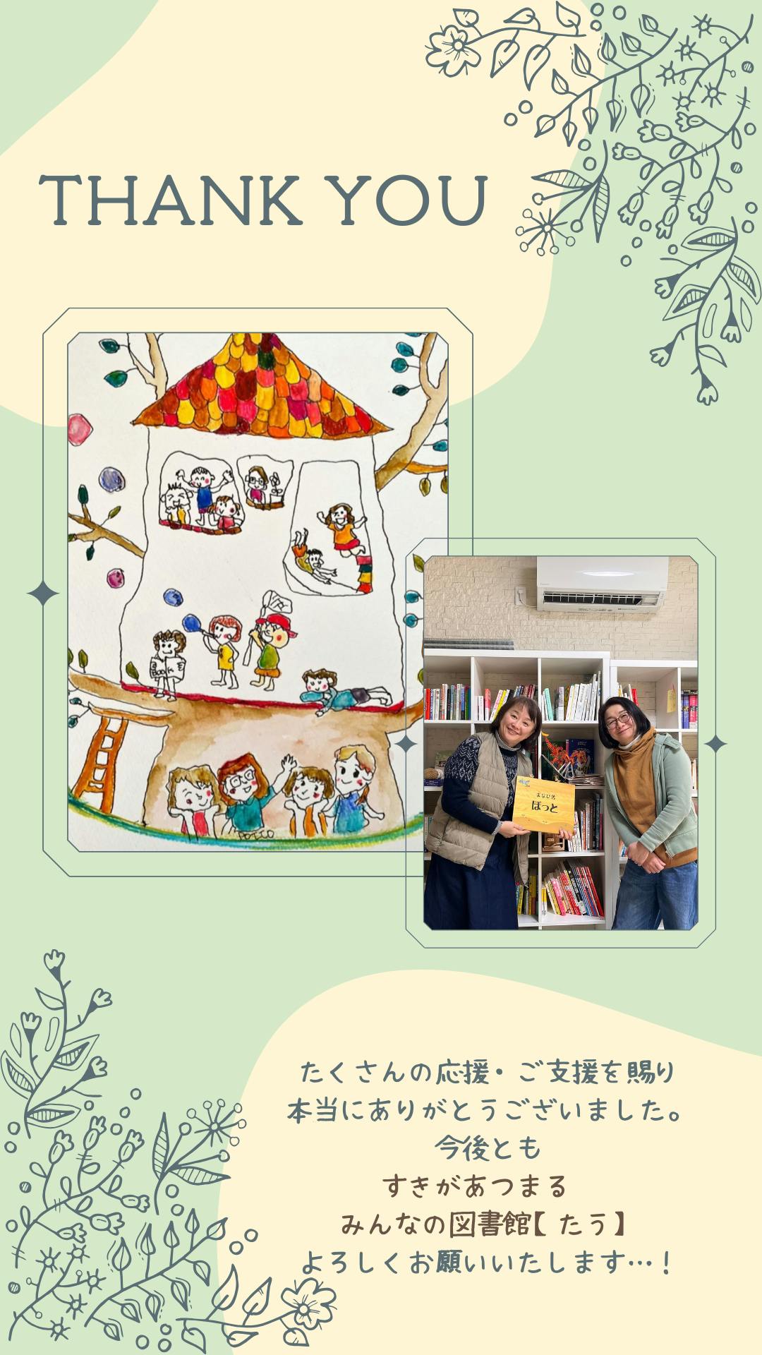 2024/02/05 17:40みなさま こんにちは!すきがあつあるみんなの図書館 たう1月30日に、無事オープンすることができました。かかわってくださった皆様、本当にありがとうございました。オープン当日の様子の写真そして、クラウドファンディング。残すところ24日間の段階で、19名の皆様より、15万円を超すご支援をいただいております。本当に本当に、ありがとうございます。いただいたご支援は、ゆっくり寛いでいただけるよう椅子などを増やしたり、安全で暖かい暖房器具を充実させたりするなど、【たう】の環境を整えていくことに充てさせていただきたいと考えています。そして、次なる夢&希望、つまり目標は…❶ユニバーサル図書(デイジー図書)を置く&そのための環境の準備 ☞PC代、イヤホン代、消毒液など 約10万円❷エアレックスマットの準備(リハビリなどにも使われる、安全・快適なマット) ☞1枚、約3万8千円です!!なぜ、次の目標がこの2点なのか?をご説明しますね。まず❶について。デイジー図書は、文字と音声で【本】を楽しむことができるシステムです。視覚に障がいがあったり、読み書きに困難さがあったりするために、印刷物を読むことに難しさのある方も、色々な本に触れ合って欲しい・出会って欲しい、そして本の世界を楽しんで欲しいと考えています。\デイジー図書を利用したい方が、いつでもふらっと【たう】に来てくださったら嬉しいなあ!/↑私たちの、心の声^ ^♪デイジー図書を利用するためには、パソコンが必要です。またイヤホンや、消毒液も併せて準備したいと考えています。デイジー図書利用のイメージ図(エンジョイ・デイジーHPより画像をお借りしました)エンジョイ・デイジーのHPはこちら★から例えば、こんな本が読めるようになります。デイジー子どもゆめ文庫は、こちら★から❷についてです。エアレックスは、特別支援学校に勤めていた時に、主に車いすやバギーを利用している子どもさんたちと過ごす際に、利用していました。エアレックス利用のイメージ写真(酒井医療のHPより画像をお借りしました)酒井医療のHP(エアレックスのページ)は、こちら★から上の画像は、フィットネスやリハビリでの様子の写真ですが、それだけではありません。このマットを下に敷いて横になると、程よい弾力があるのでリラックスしやすく、何より床の寒さが伝わってこないという優れものでした。\車椅子やバギーを利用している方が【たう】に遊びに来てくださった時に、より安心安全に、そして何よりリラックスして過ごしていただけると嬉しいなあ!/↑私たちの、心の声^ ^♪また、赤ちゃんや小さな子どもさんにとっても、安全で快適なマットとしてご利用いただけると思います!2つの心の声を聞いていただきましたが…これらの夢と希望を叶えるには、約14万円必要です。だれでも、来たいと思ってくださる方が気楽に来れるようそして来てくださった方が、だれでもリラックスして楽しく過ごせるよう残り24日ご支援、応援の方、どうぞどうぞ、よろしくお願い致します…!!そして…先日、NHKの方が取材に来てくださいました。NHKの取材時の様子2月14日(水)バレンタインデーの18:10より、しまねっとニュース610で放送される予定になっています。【たう】のこと、そしてこのプロジェクトのことを広く知っていただいたり、興味を持っていただいたりするために、情報をシェアしてくださることも、とても嬉しいです。そちらも併せて、どうぞよろしくお願い致します。 もっと見る