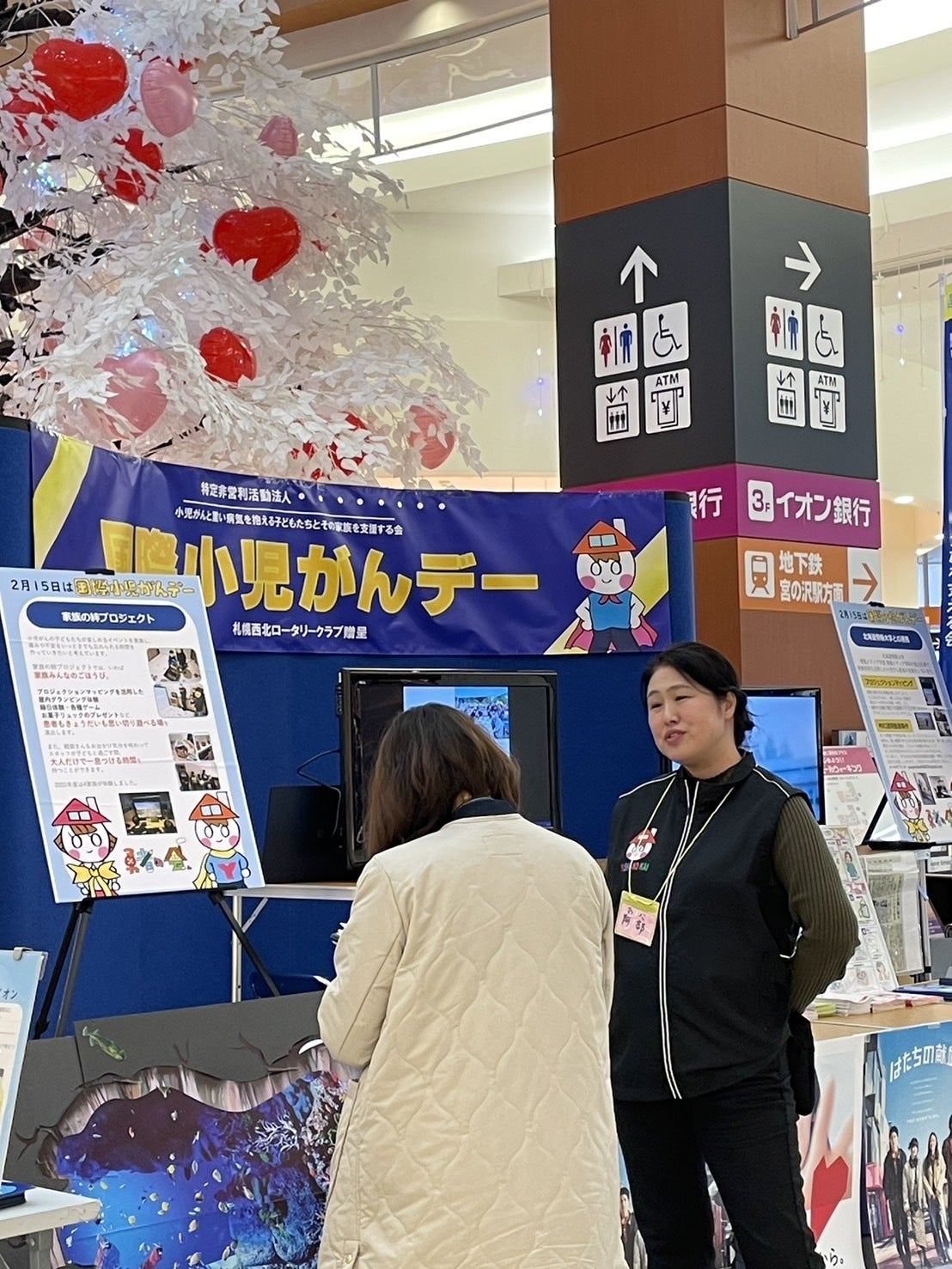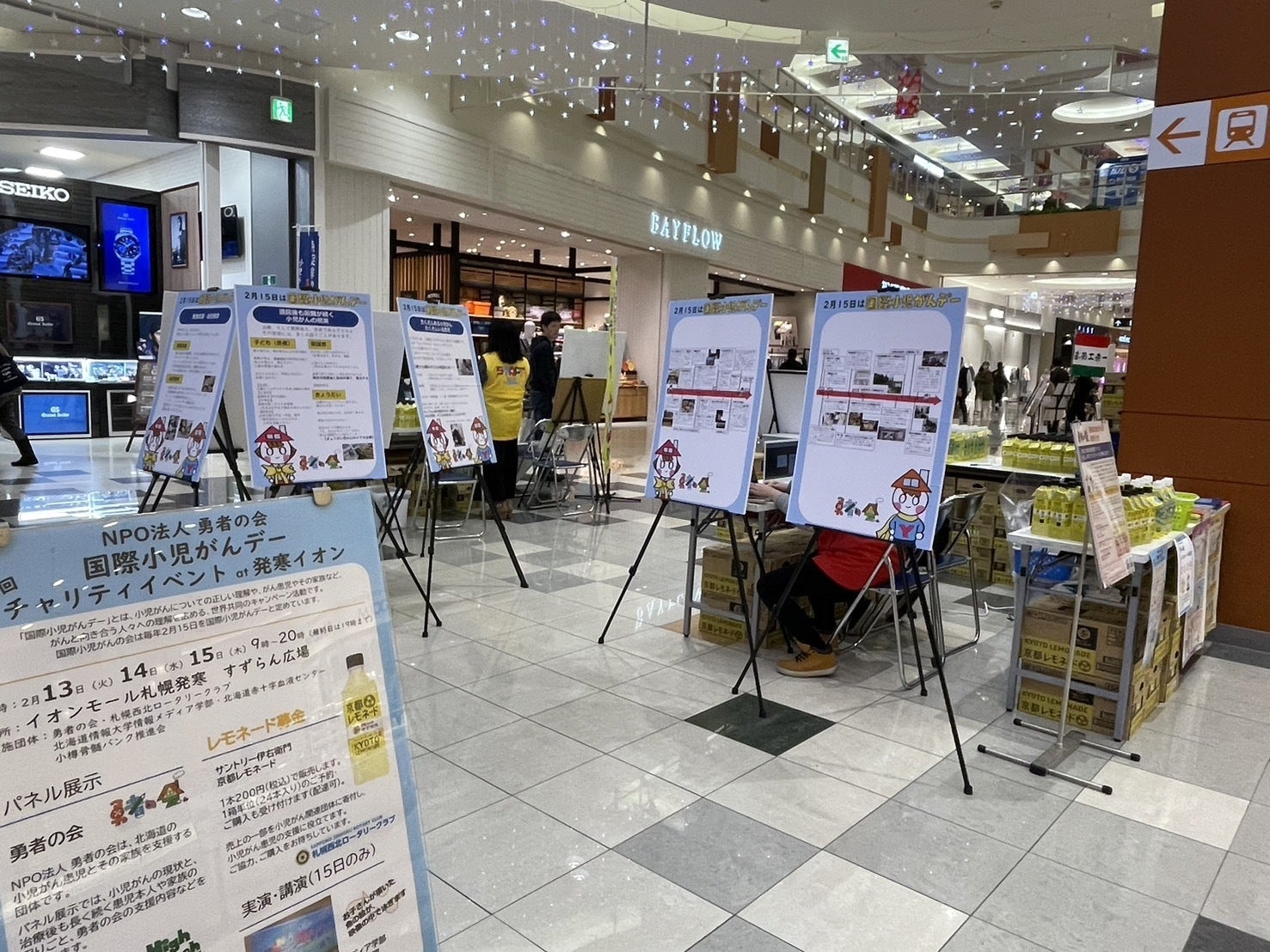 2月13~15日の三日間、イオンモール札幌発寒の「すずらん広場」にて、小児がんの現状をお伝えするパネル展示のほか、チャリティ販売も実施中です。