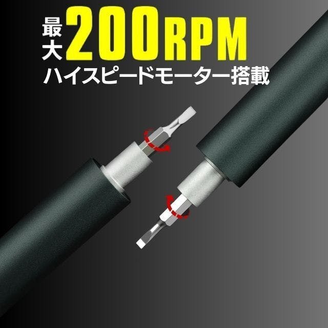 【KAIWEETS マルチビット電動精密ドライバー】はドライバー本体内に最大200RPM(無負荷時)のハイスピードモーターを内蔵。正逆回転はボタン一つで切り替えができ、回転ボタンを押さなければ手動ドライバーとして使えます。