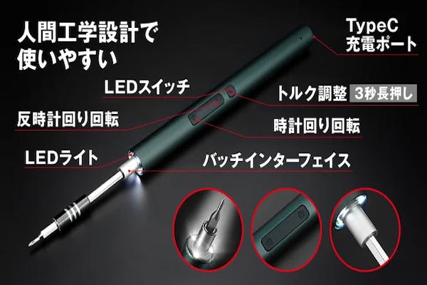 【KAIWEETS マルチビット電動精密ドライバー】は人間工学設計で使いやすさも抜群。