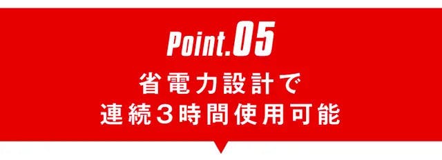 フル充電まではわずか1時間。しかも1回の充電で連続3時間(無負荷時テスト値)稼働可能です。またフル充電での待機期間は約90日。間が空いても使いたい時にすぐに使えます。