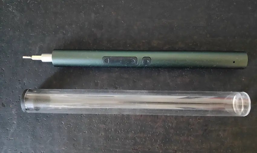 一つ目ですが、電動精密ドライバー本体のスイッチを入れてモーターが始動した時、やや力を入れて握っていないと本体が、少し滑って回転してしまう感覚があります。ボール型と違いペン形状ドライバーの弱点ですが、グリップ力が劣ってしまいます。但し、モータ始動時の握る力の入れ具合に慣れれば気にならなくなると思います。
