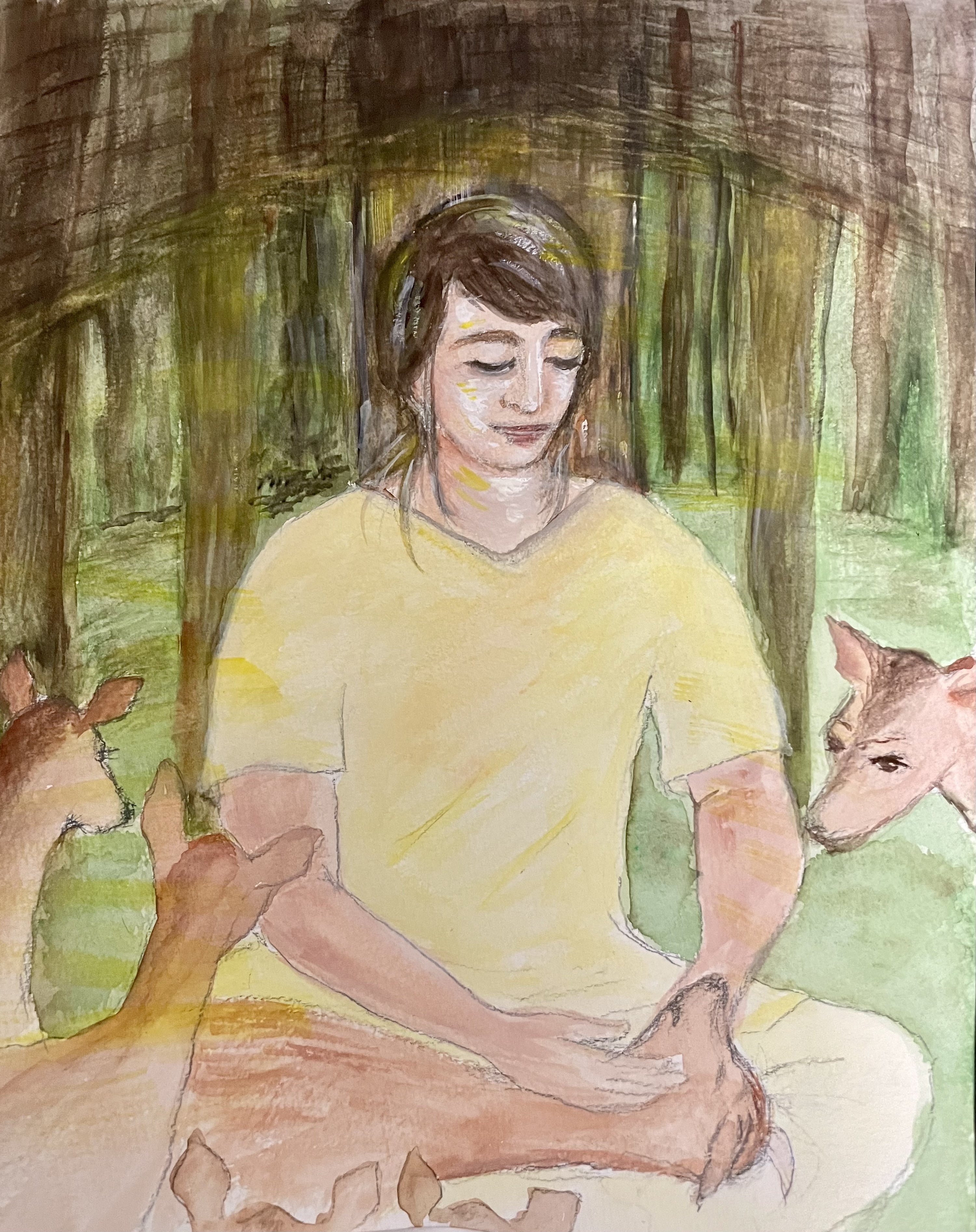 暗い森の中にいても、彼の居る場所だけは、優しい光に包まれている。