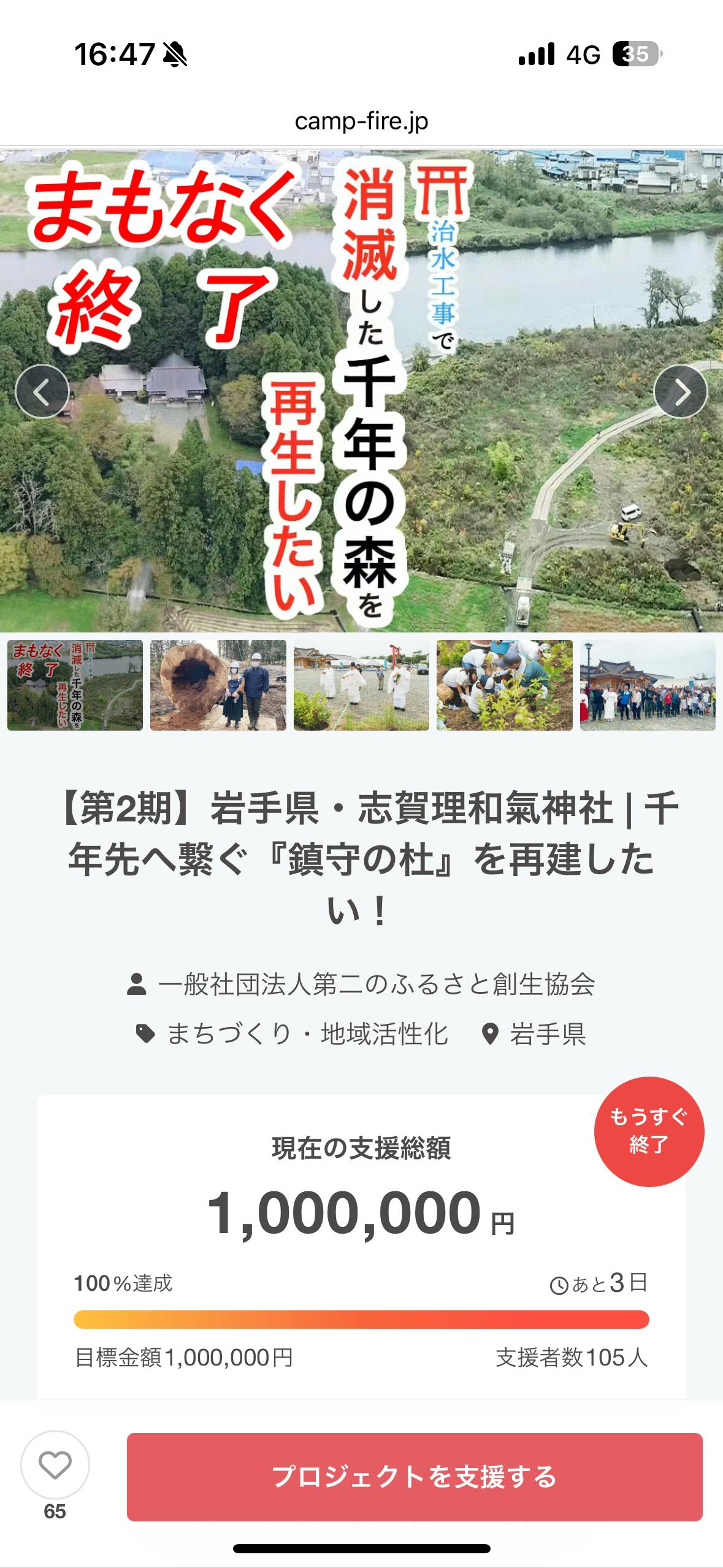 ご支援の募集期間は本日を含めあと4日となりました。