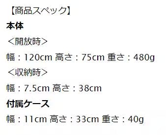 A2:開いた状態の直径が120cm、高さが75cmになります。収納時は幅7.5cm、高さが38cmになります。
