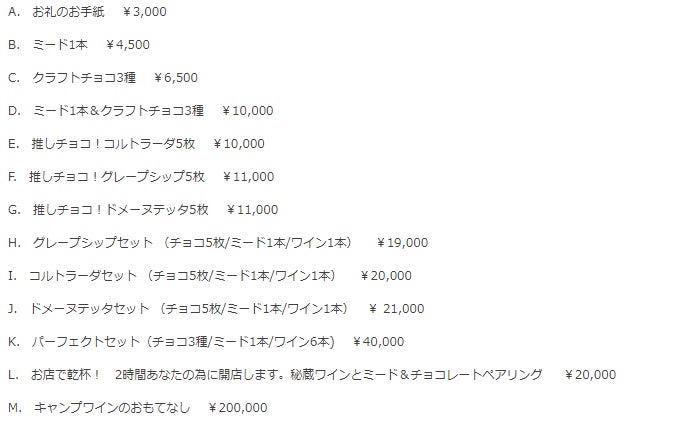 「※20歳未満の者による飲酒は法令で禁止されています。B.D.H.I.J.K.Lのリターンを選択できません。」