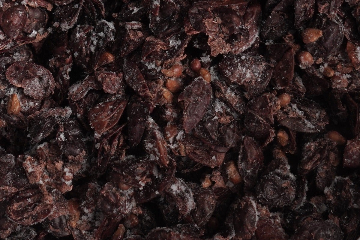 ドメーヌテッタで産出された搾りかすを使用。ピノノワールも搾汁率が高くアルコールの香りが前に出ていた為糖の補填とアルコールの揮発を行い、細かめのメッシュにしカシューナッツで作ったミルクチョコレート『ネクストミルク』に混ぜ込みました。
